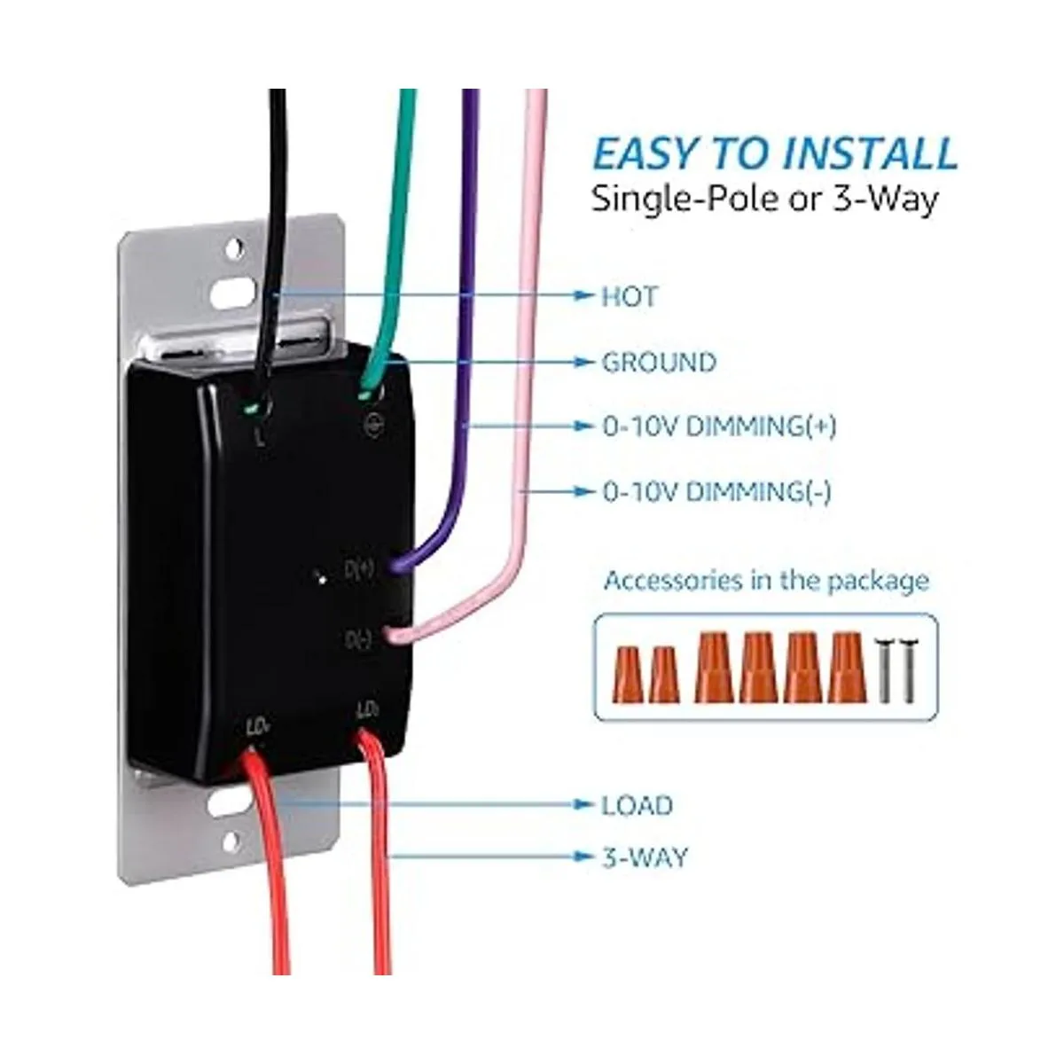 Rueda ajustable: este interruptor de atenuación de 0 a 10 V para luces LED tiene una rueda ajustable en el lado izquierdo para un máximo rango de atenuación para una amplia variedad de condiciones.