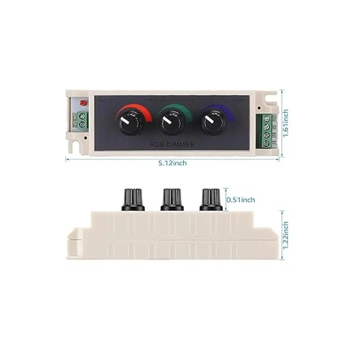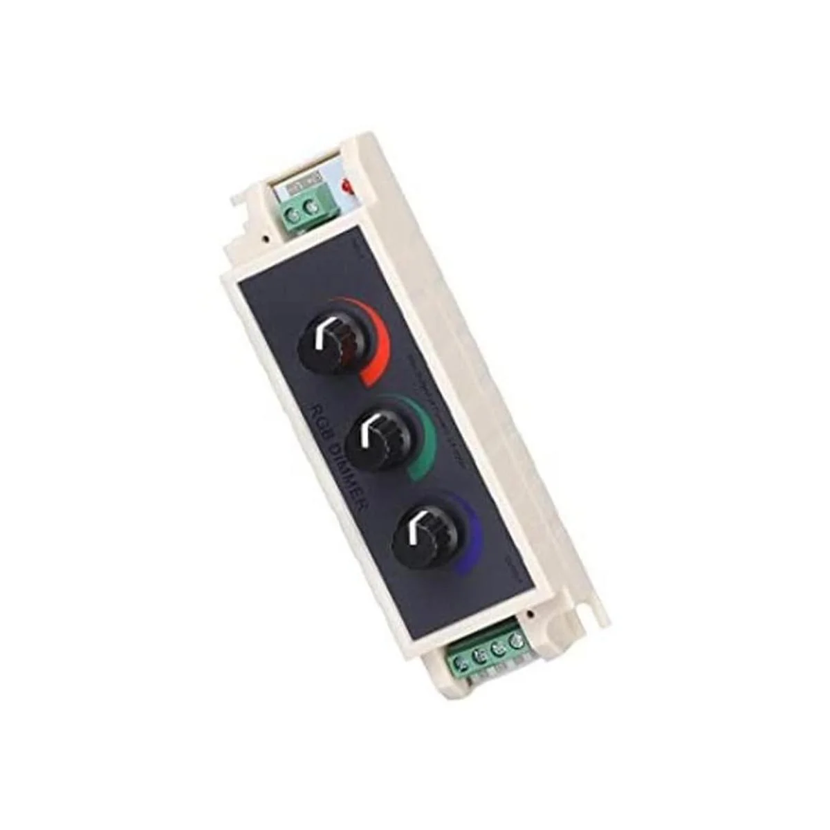 Torchstar KBDM1224V9ARGB3CN. Controlador de regulador de intensidad de PWM RGB LED. Con 3 canales de salida para franja de luces multicolores y de color único, DC, 12 voltios a 24 voltios, 9 Amp.