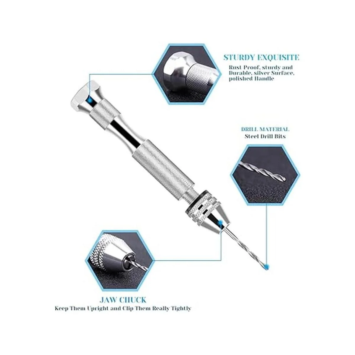 Taladro de mano de alta calidad: nuestro taladro de pasatiempo está hecho de acero inoxidable de alta calidad que es a prueba de óxido, resistente y exquisito. El taladro de joyería cuenta con 3 mandíbulas, sujeta las brocas de 0,8 a 0.118 in, mantenlas en posición vertical y engánchalas muy firmemente. Puedes apretar y aflojar fácilmente las brocas girando el cabezal del tornillo de banco