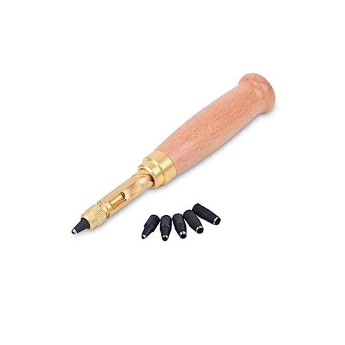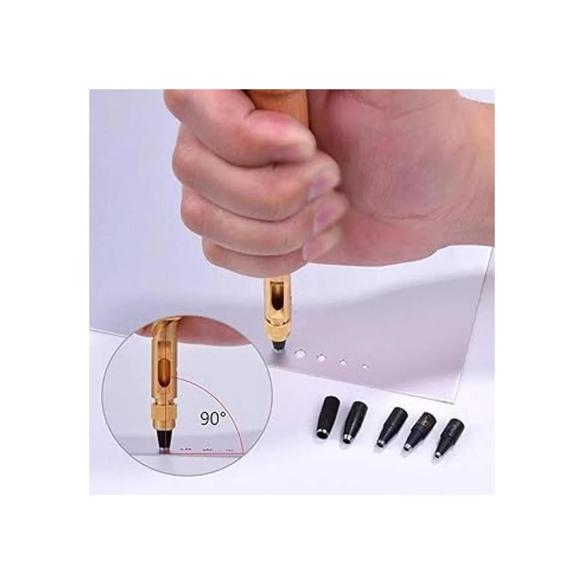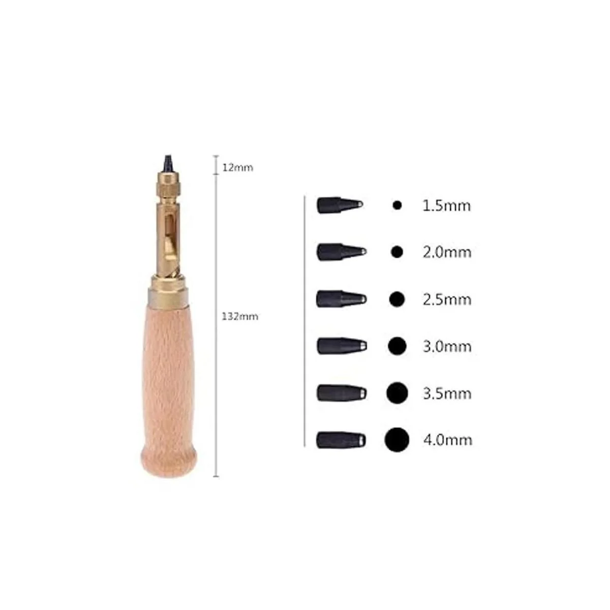 El paquete incluye: 1 perforador con 6 cabezales de perforación. Material: latón y madera. Con 6 perforadores: 0.059 in, 0.079 in, 0.098 in, 0.118 in, 0.138 in y 0.157 in