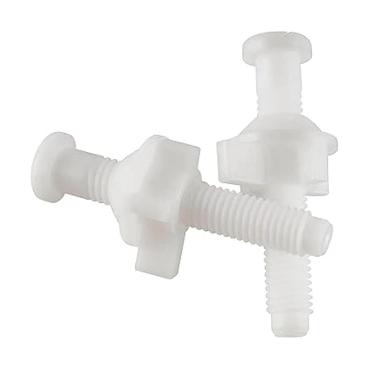 Tornillo universal de bisagra de asiento de inodoro para bisagras de asiento de inodoro de montaje superior, pernos y tuercas de plástico blanco con arandelas de acero inoxidable, paquete de 2