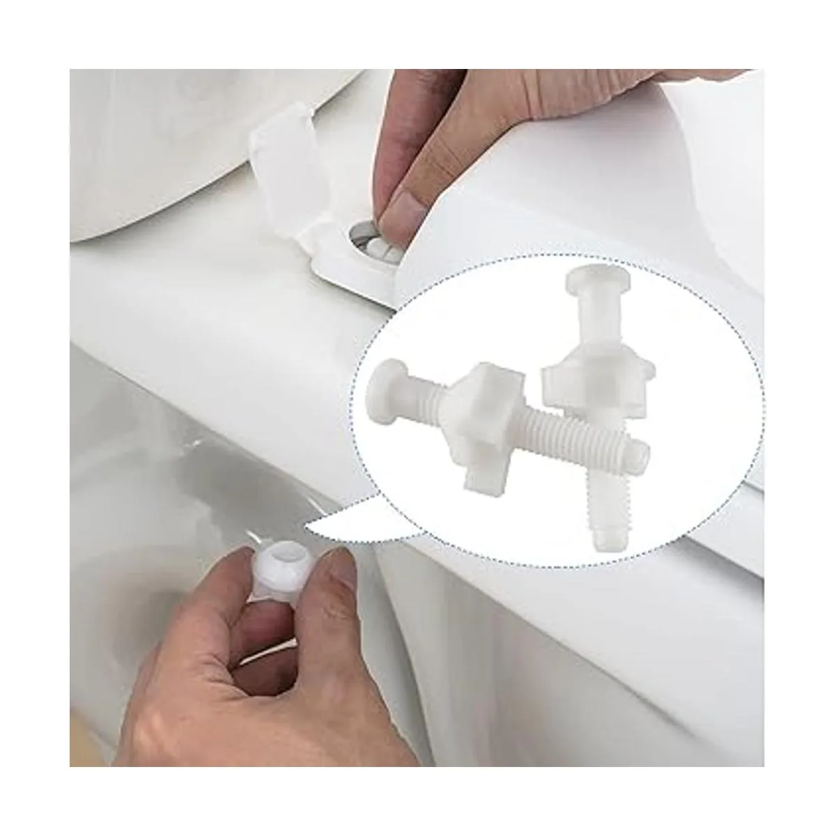 3. Fácil instalación: los pernos de bisagra del asiento del inodoro se pueden instalar en pocos minutos. Sujeta de forma segura tu asiento de inodoro al inodoro, buen accesorio para reparar tu asiento de inodoro. El kit de pernos blancos combina perfectamente con el tanque del inodoro