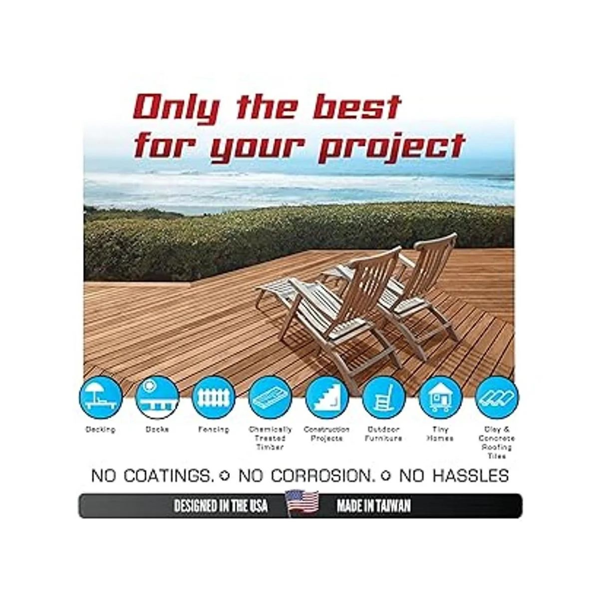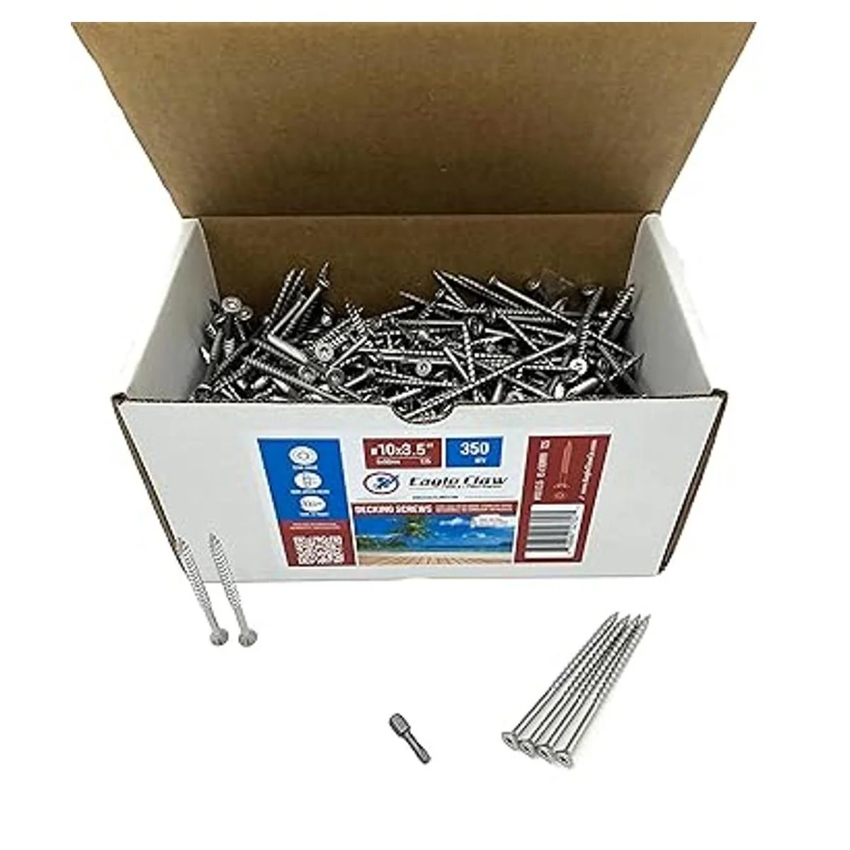 Tornillos de acero inoxidable de grado 305 de 3.5 in para terrazas, vallas y carpintería de uso general.