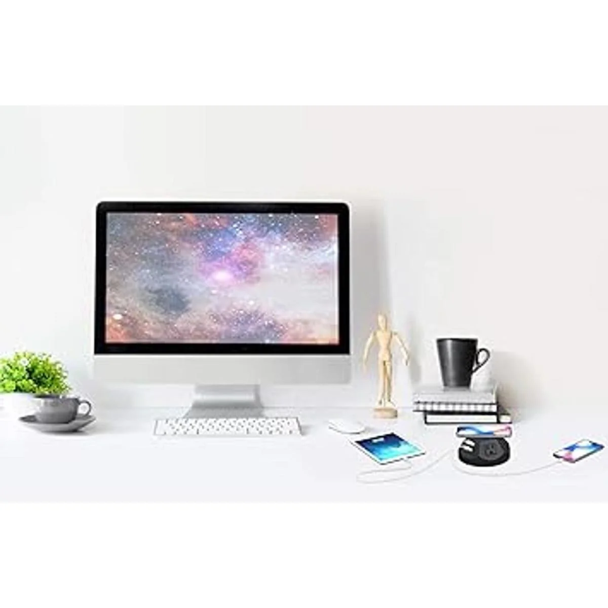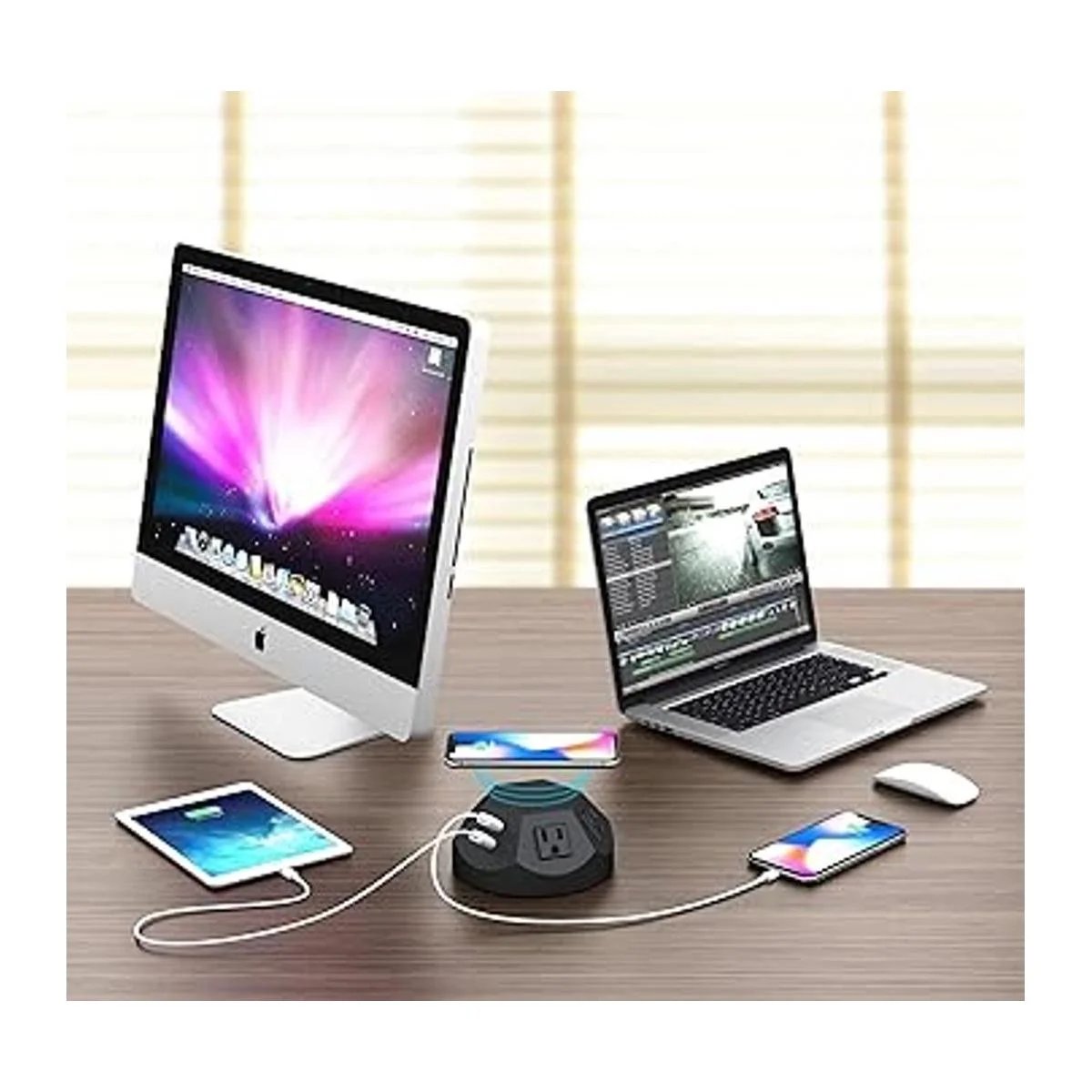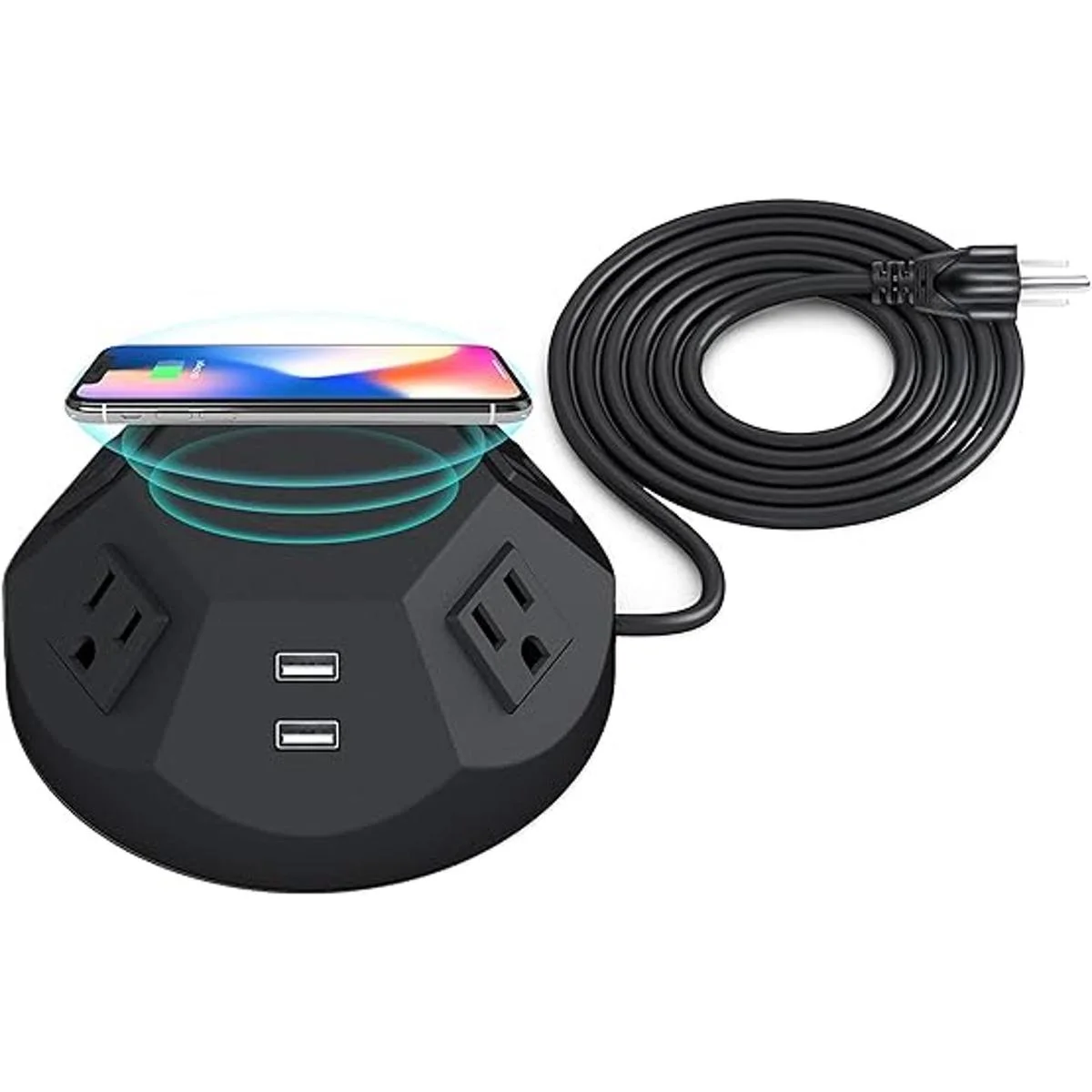 Estación de carga todo en uno: ofrece 4 puertos USB, 4 tomas de corriente CA, carga inalámbrica rápida, y el cable de 6.6 ft de largo para ser una estación de carga multifunción que carga varios dispositivos al mismo tiempo. La almohadilla de carga inalámbrica te permite colocar tu teléfono en la parte superior donde está nuestro desorden y todavía es fácilmente accesible.