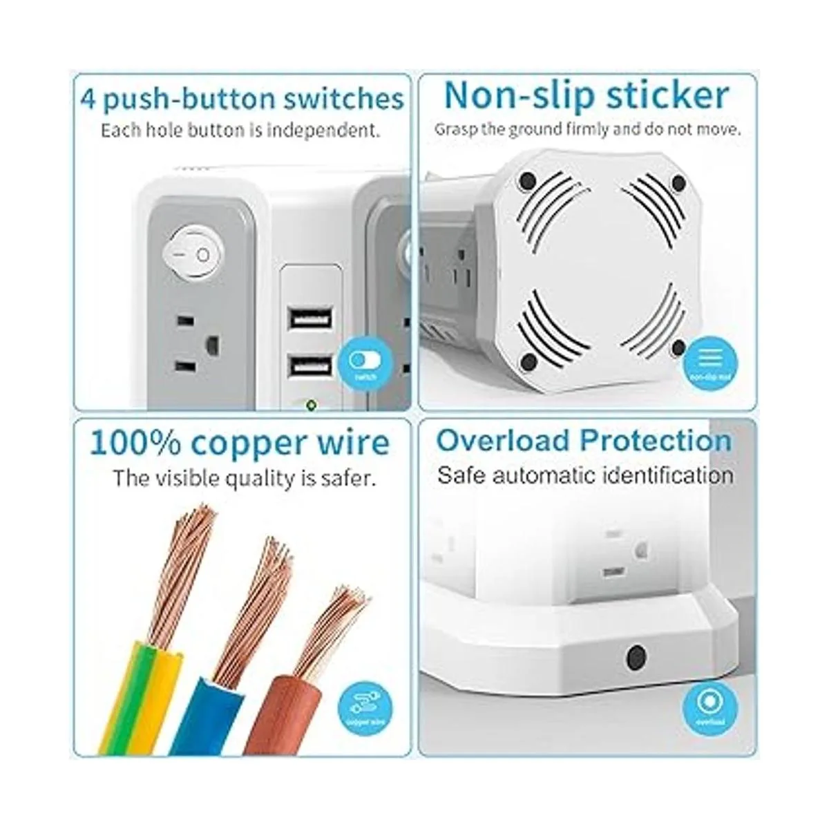 Torre de regleta de alimentación segura y fiable: para protegerte a ti y a tus valiosos dispositivos electrónicos, esta torre de regleta tiene tecnología de protección avanzada y certificación de seguridad FCC, y CE y además, te proporcionaremos el mejor servicio. Si tienes alguna pregunta, por favor déjanos un mensaje. Nos pondremos en contacto contigo a través de en 24 horas.