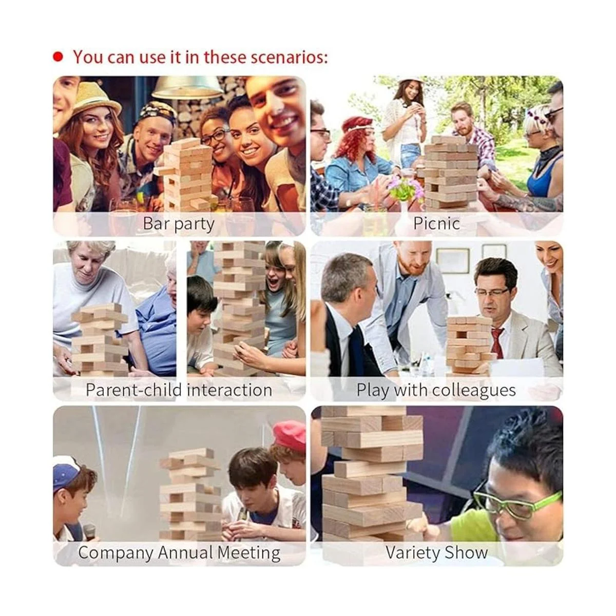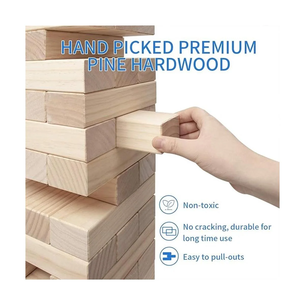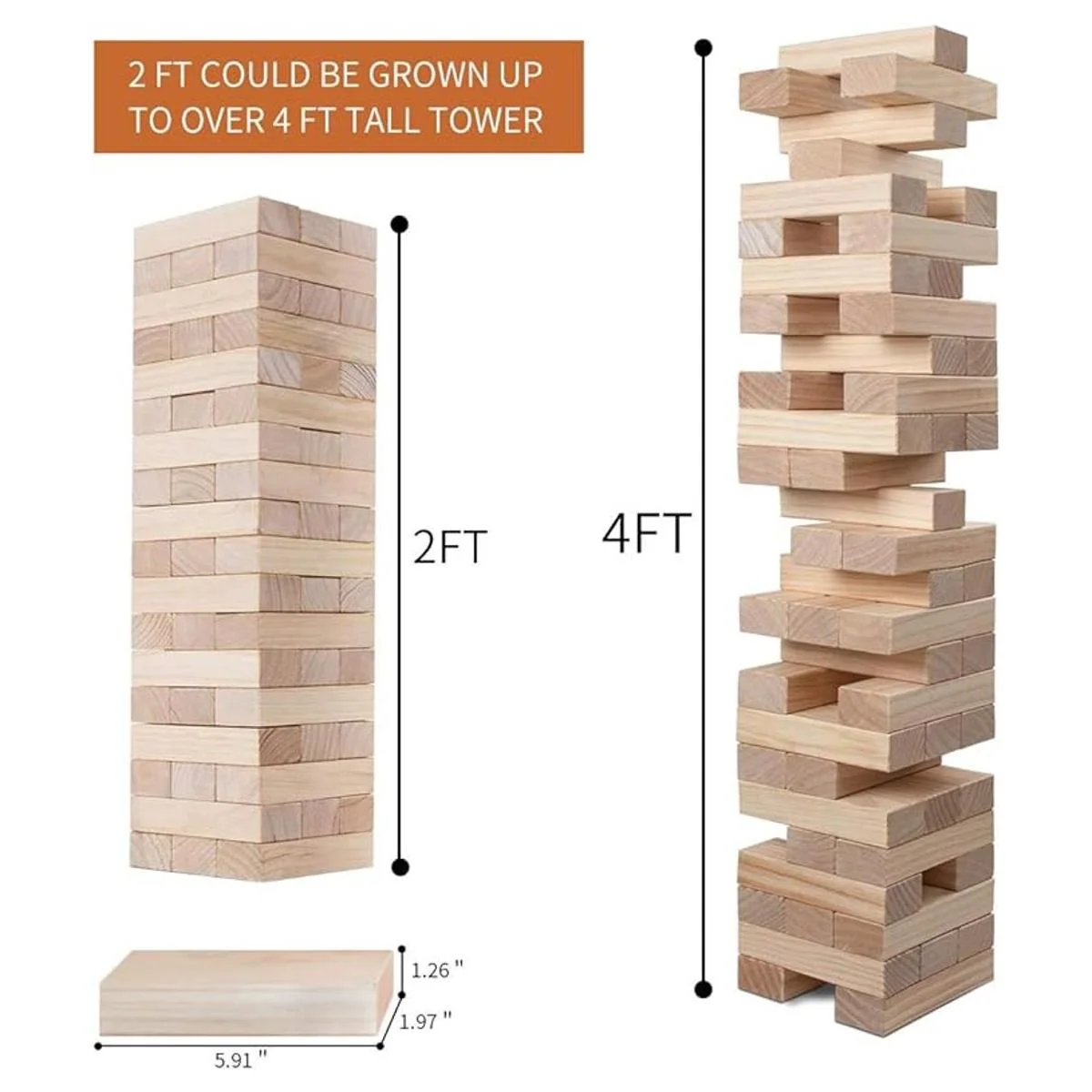 Tamaño gigante: nuestra torre viene con 54 grandes bloques de madera elaborados con precisión, maderas de 6 x 2 x 1.3 pulgadas para una torre completa de 20 pisos/2 pies de altura, la más alta del mercado. Puede crecer a más de 4.5 pies mientras juega