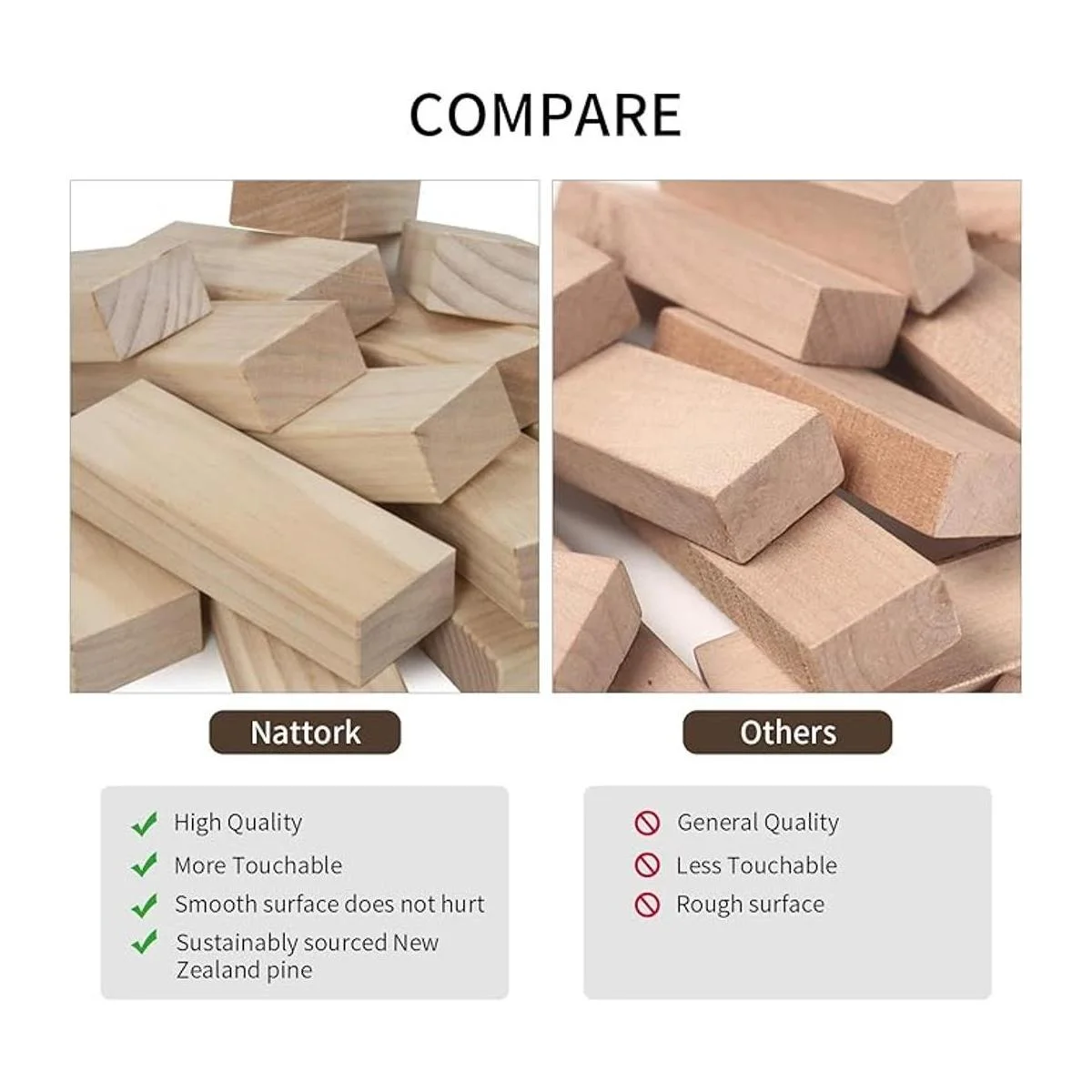 Alta calidad: cada pieza de bloque está hecha de madera de pino de Nueva Zelanda seca al horno que proporciona una durabilidad duradera. La madera de alta calidad resiste el desgaste y no recibe daños después de cada secadora de la torre.