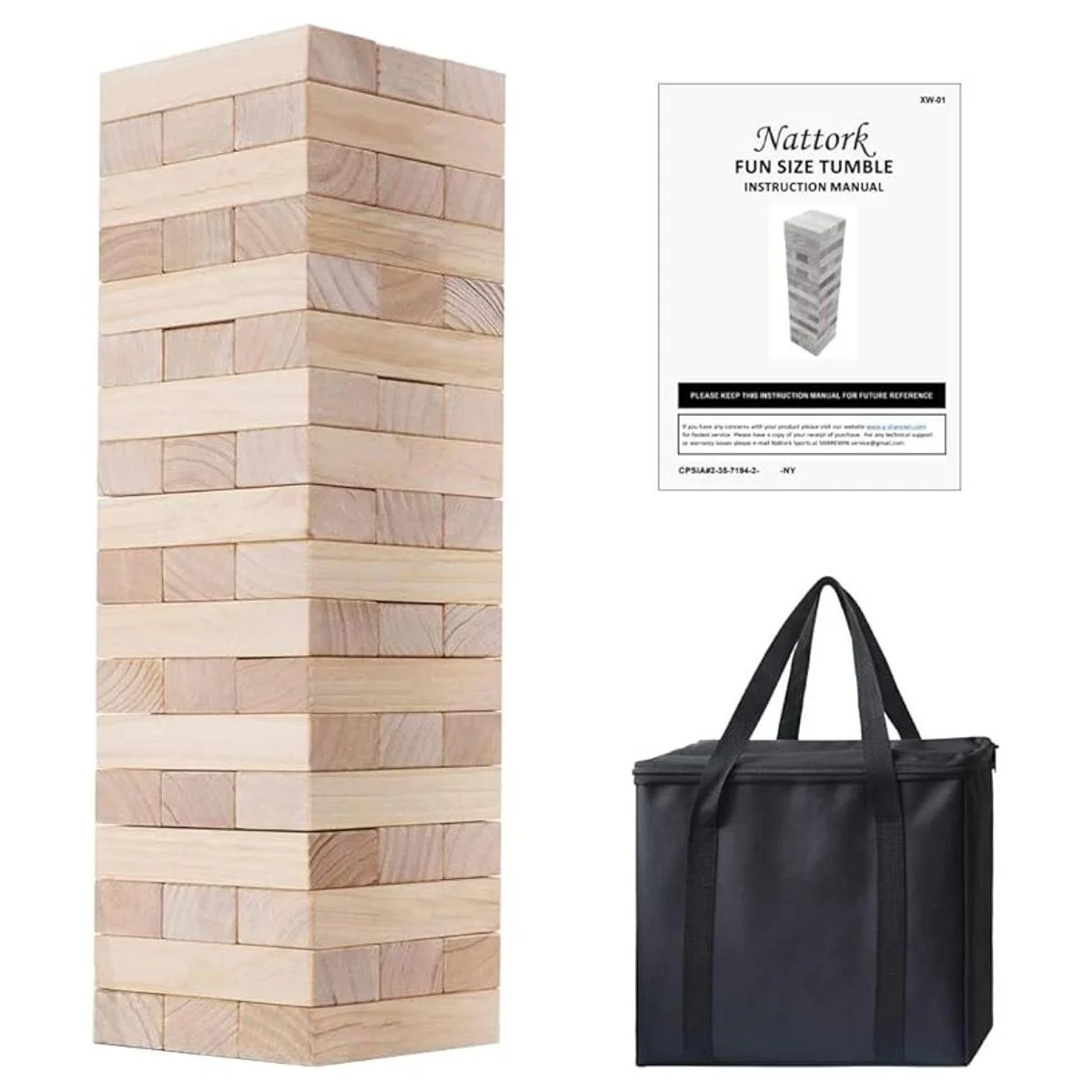Torre gigante pilas de hasta más de 4 pies Juego de bloques de madera gigante con estuche de transporte, hecho de madera de pino de alta calidad, ideal para adultos y niños, familia, 6 x 2 x 1.3 pulgadas, 54 piezas