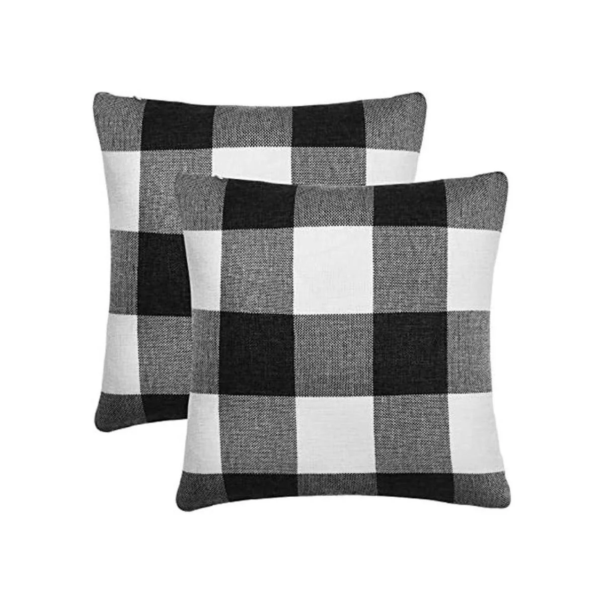 Tosewever Juego de 2 fundas de almohada a cuadros de búfalo, fundas de almohada rústicas de algodón y lino, para decoración del hogar, automóvil, cama, sofá y sofá 18 x 18 pulgadas, paquete de 2 unidades en blanco y negro