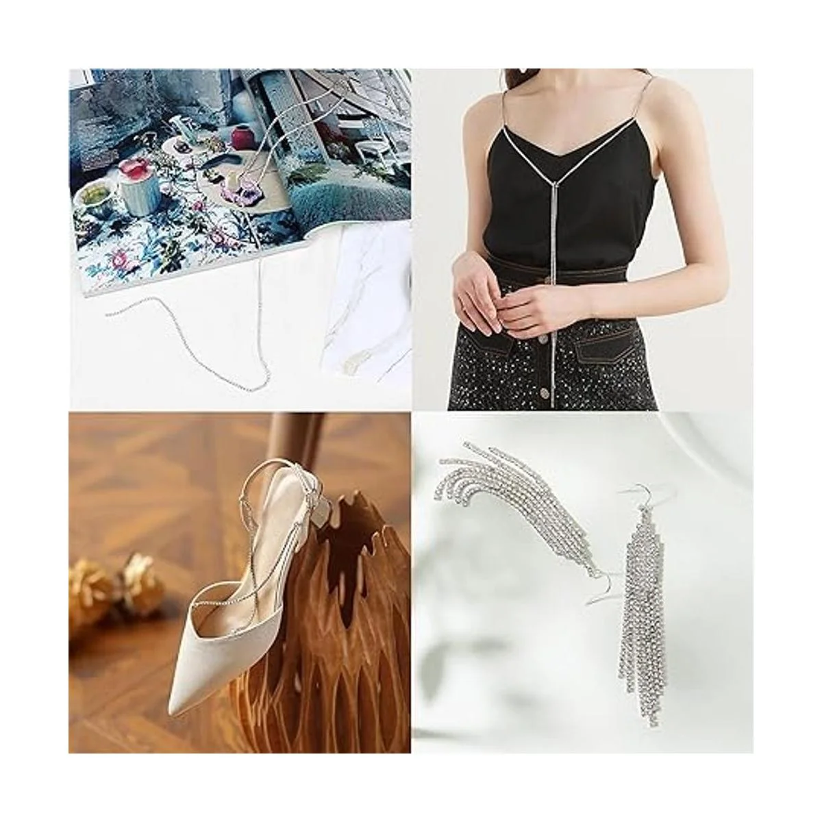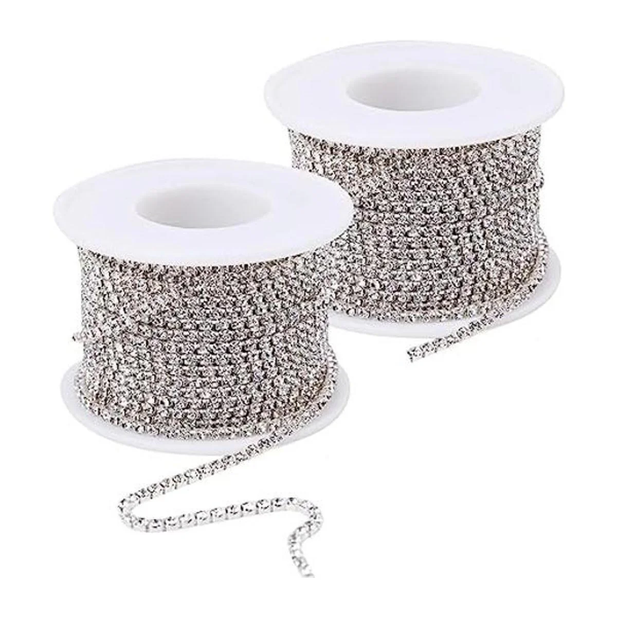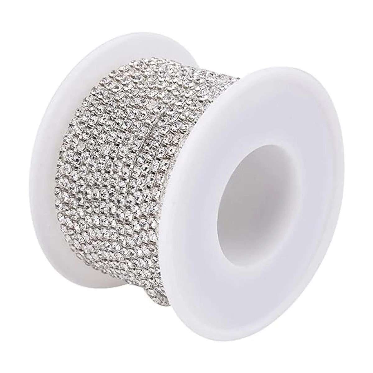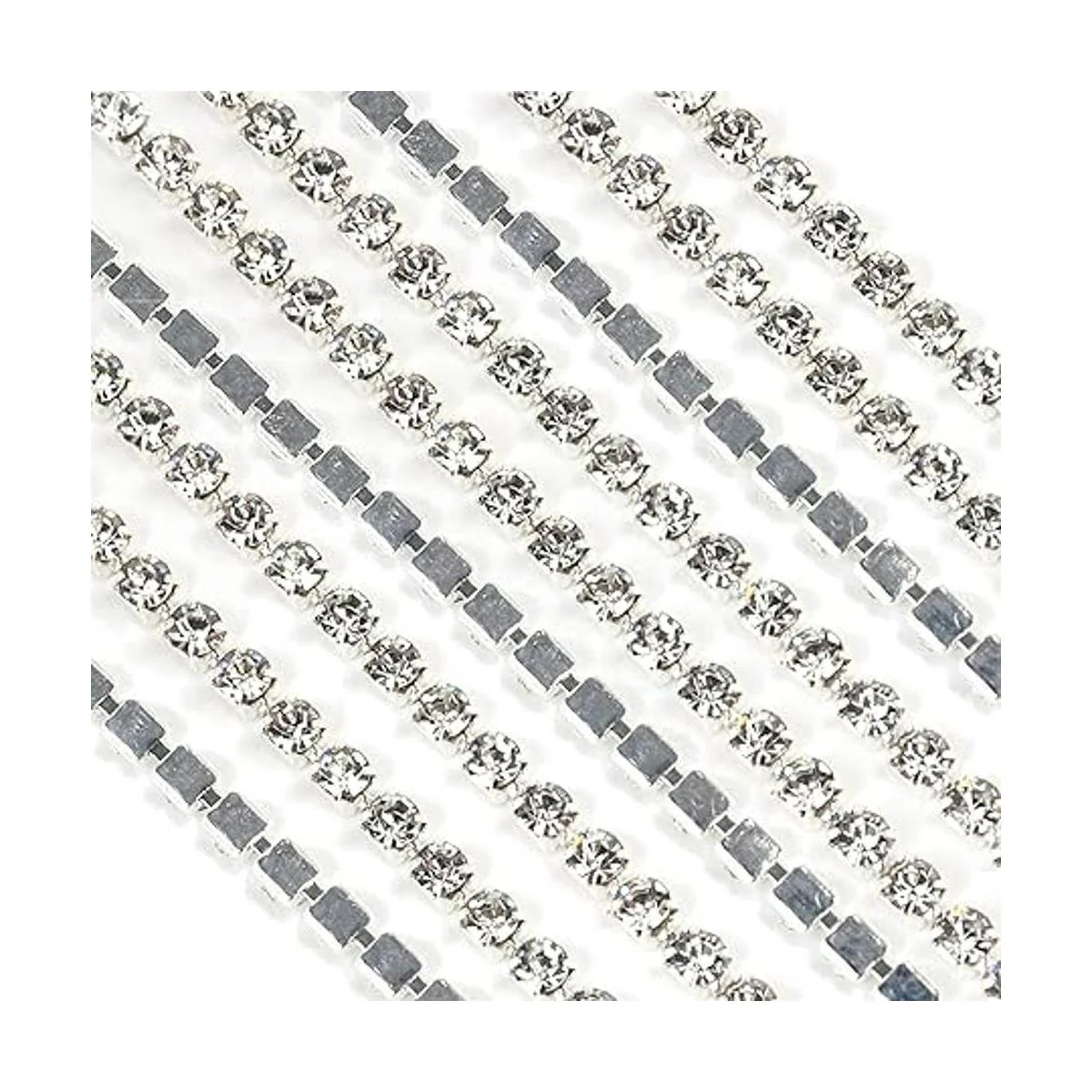 Tosnail Cadena de diamantes de imitación de 21.8 yardas, cadena de diamantes de imitación de 0.098 in, cinta de diamantes de imitación para manualidades, plata de cristal
