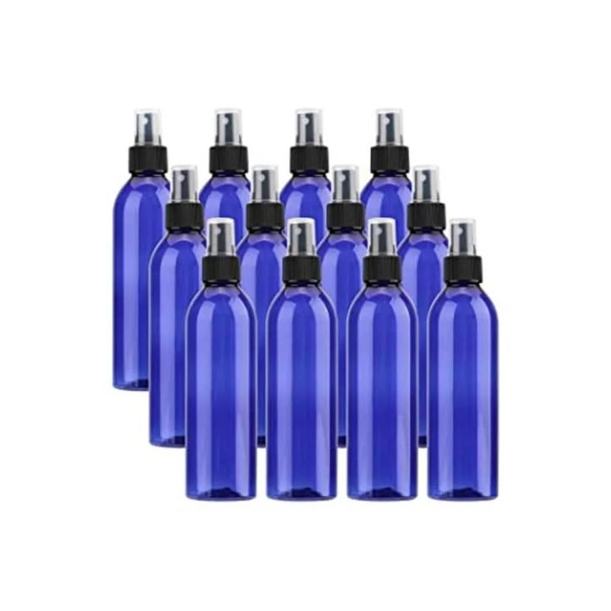 Paquete económico de 12 botellas de plástico azul con pulverizador de niebla negra.