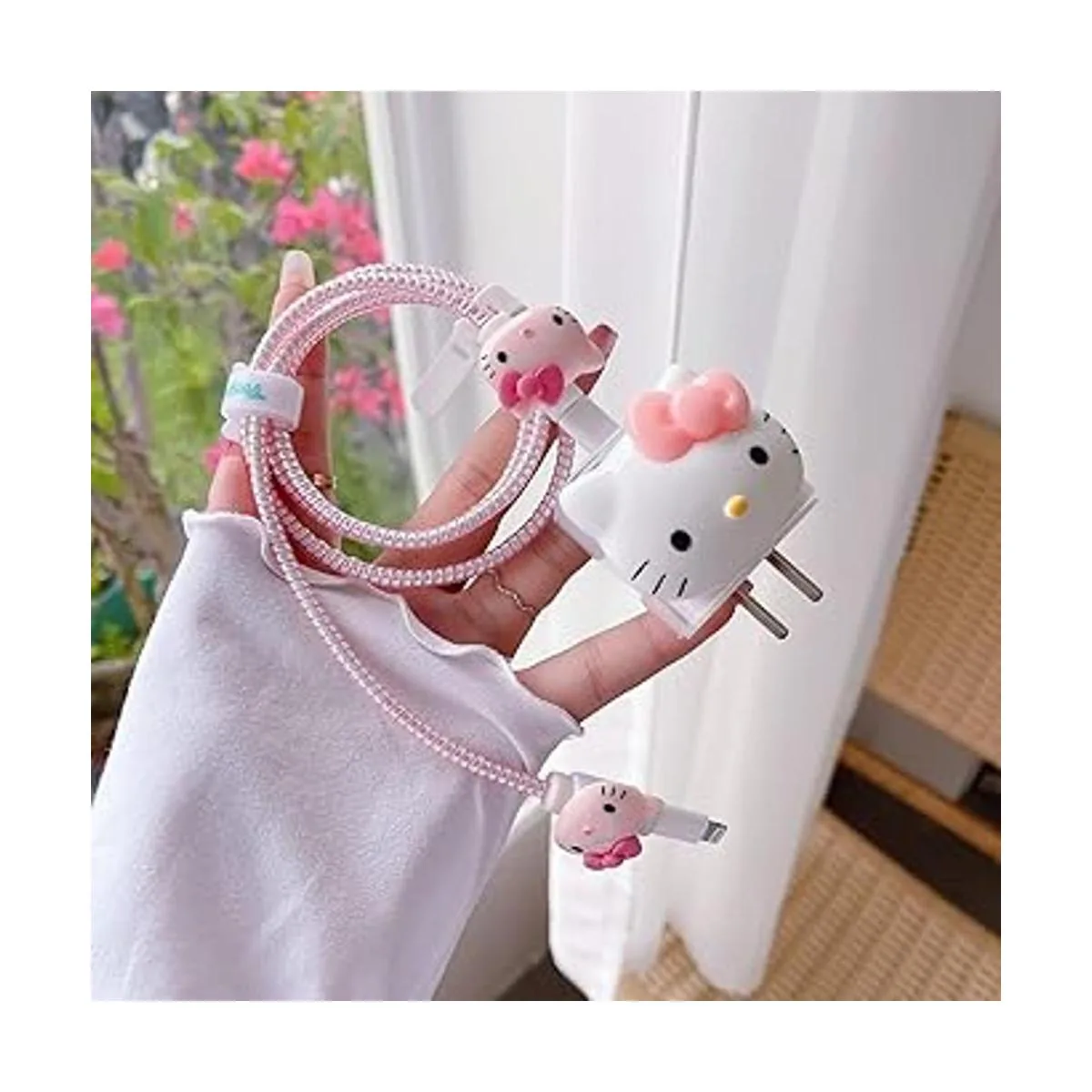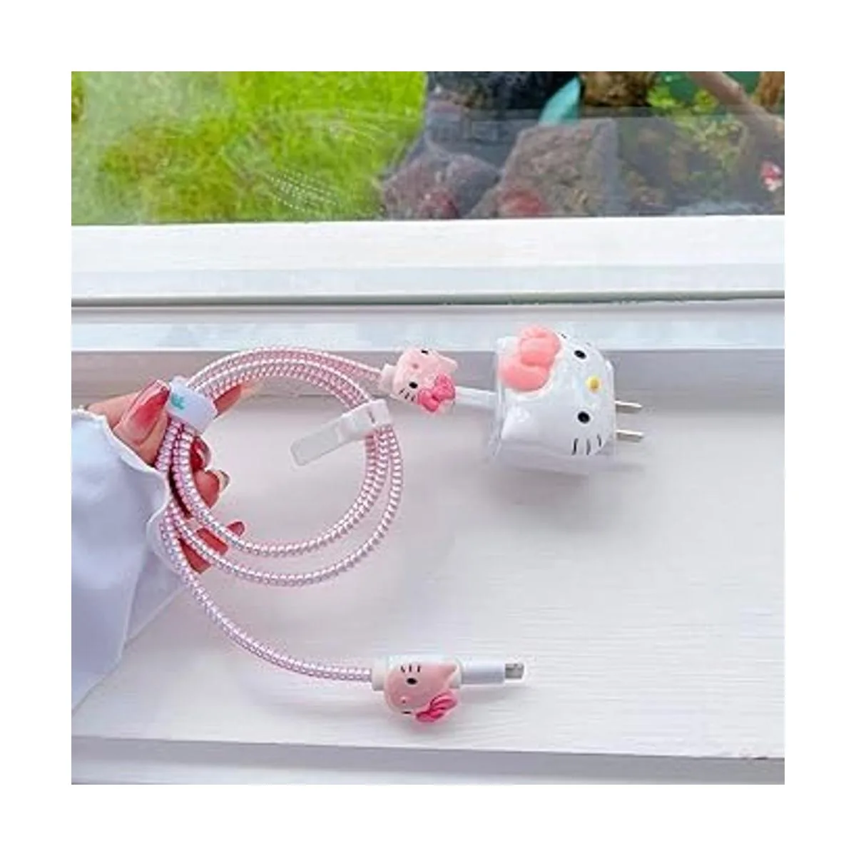 Tospania Protector de cable para bricolaje, cargador de cables, cable de datos, protector de línea de cargador USBC de 18 W20 W, compatible con iPhone 11, 12, 13 Pro Max gatito rosa
