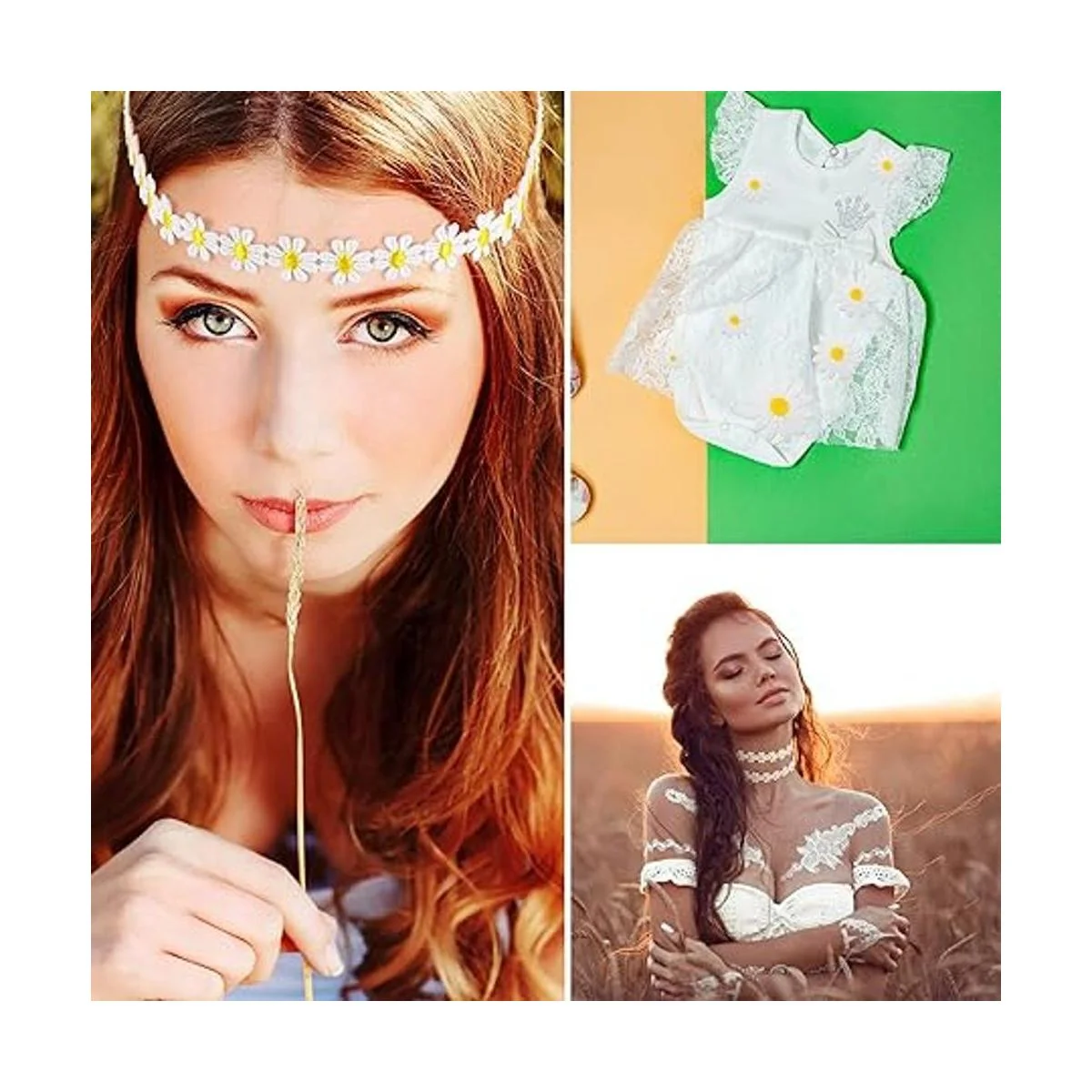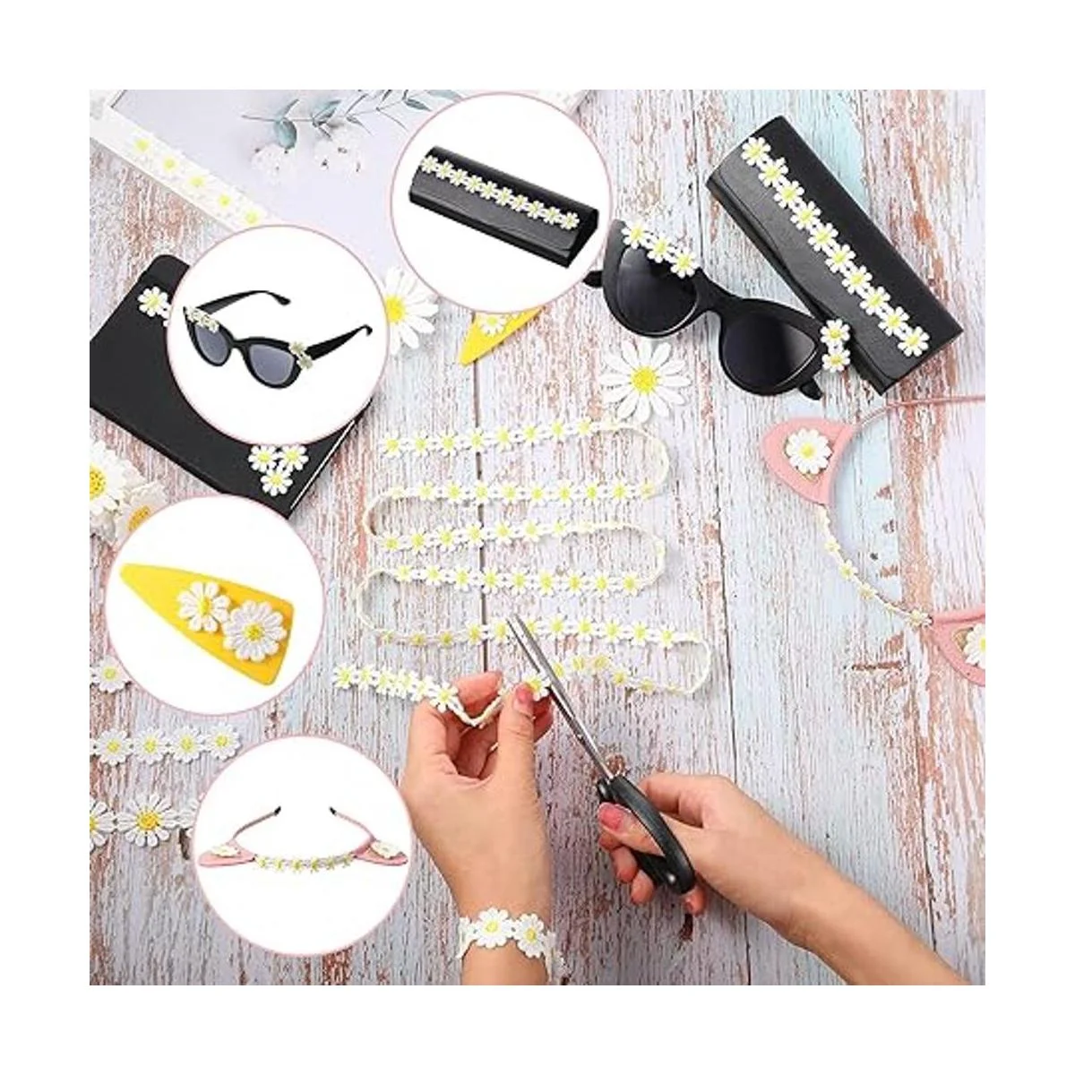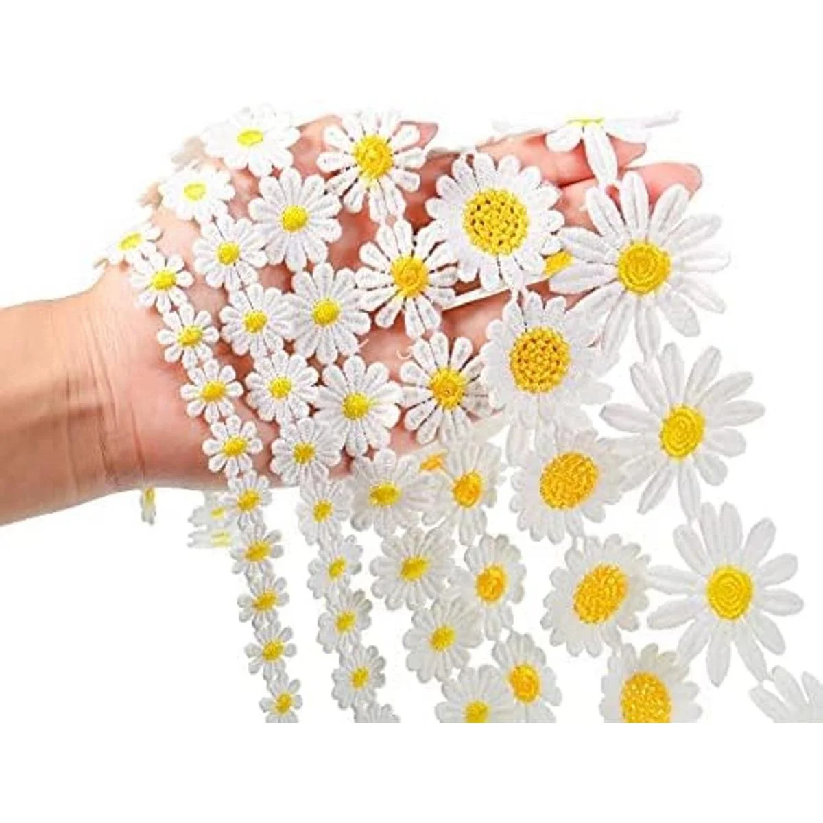 Proyectos de bricolaje: esta cinta de encaje de margaritas puede ser hermosas decoraciones para diferentes proyectos de manualidades, como pasadores, vestidos, jeans, camisetas, muñecas, funda de almohada, bolsa, manualidades, cortina, velas, ramos de boda, velas, marcos de fotos, álbumes de recortes y mucho más