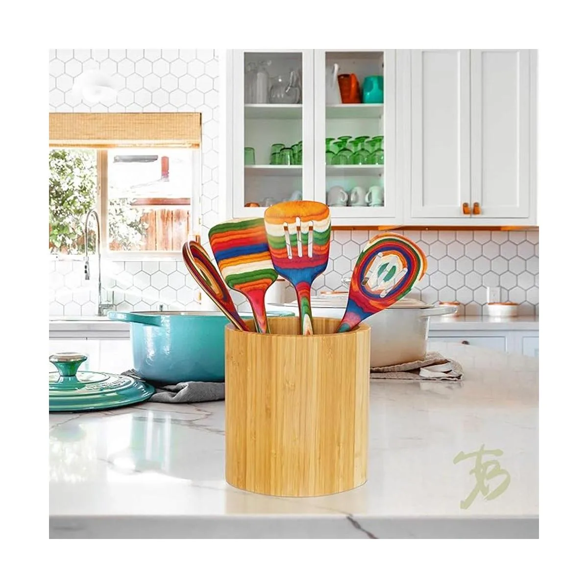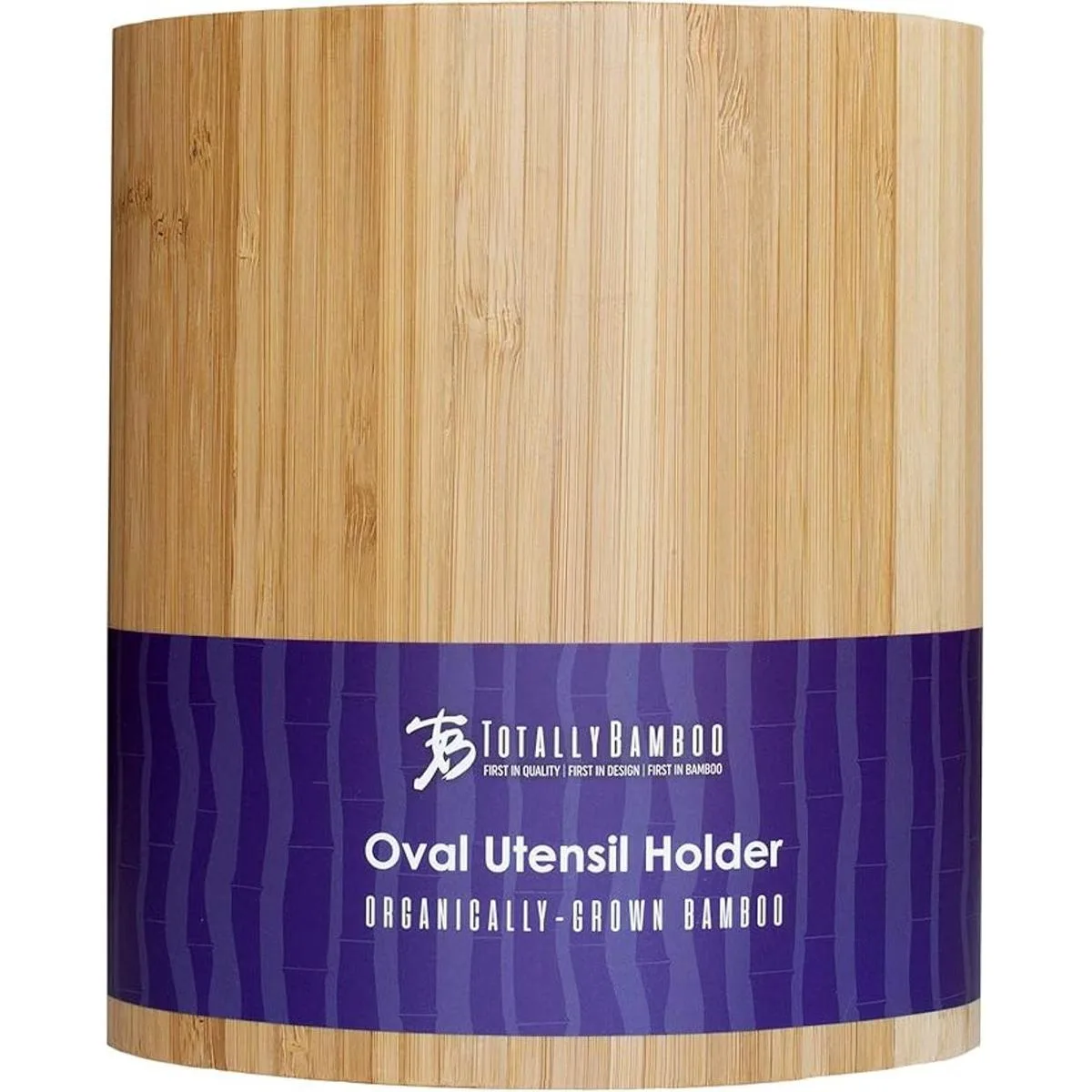 Totally Bamboo Soporte para utensilios de cocina de bambú de forma ovalada, 6 x 4 x 7 pulgadas