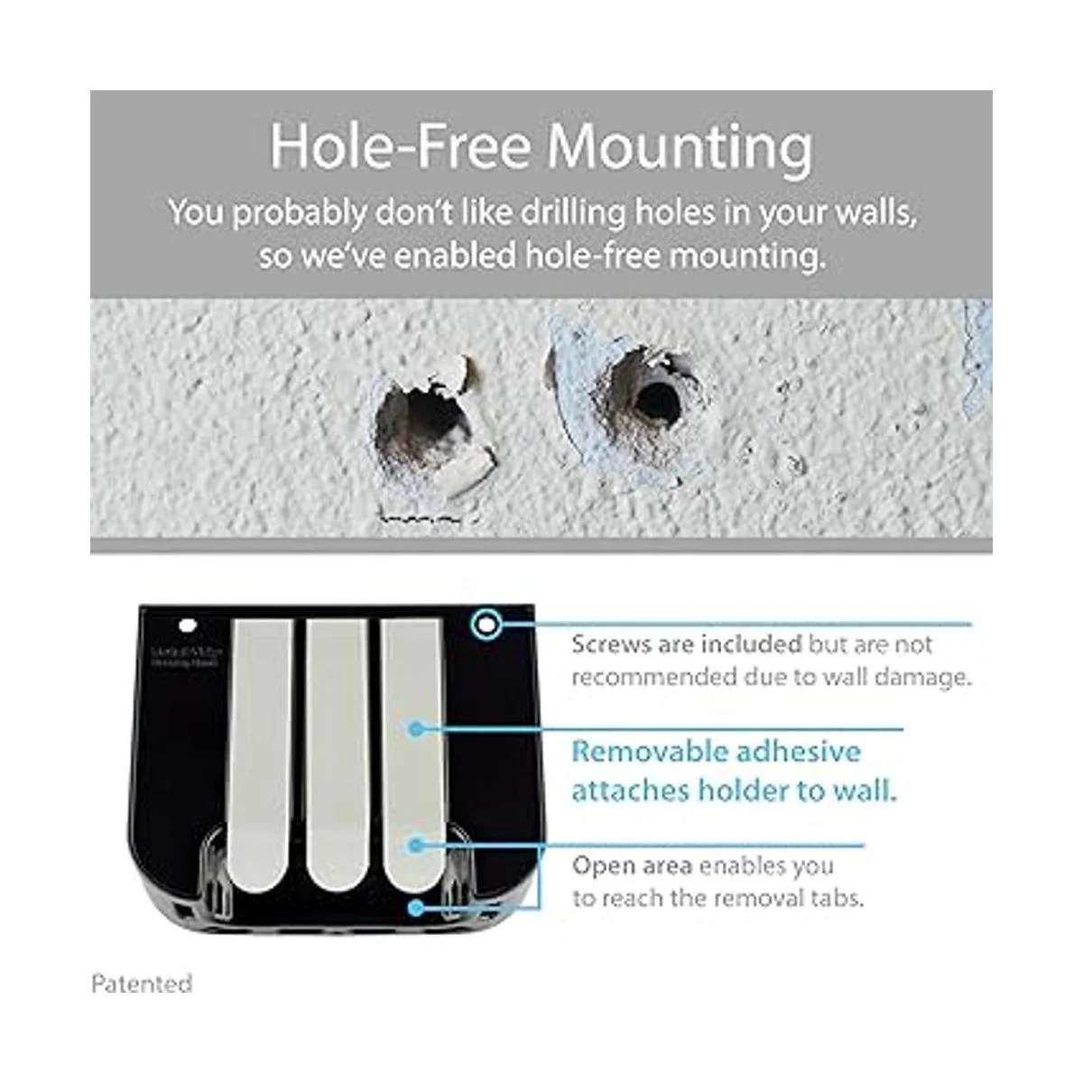 TotalMount Soporte remoto sin agujeros, elimina la necesidad de taladrar agujeros en tu pared para 2 o 3 controles remotos, negro, cantidad 1
