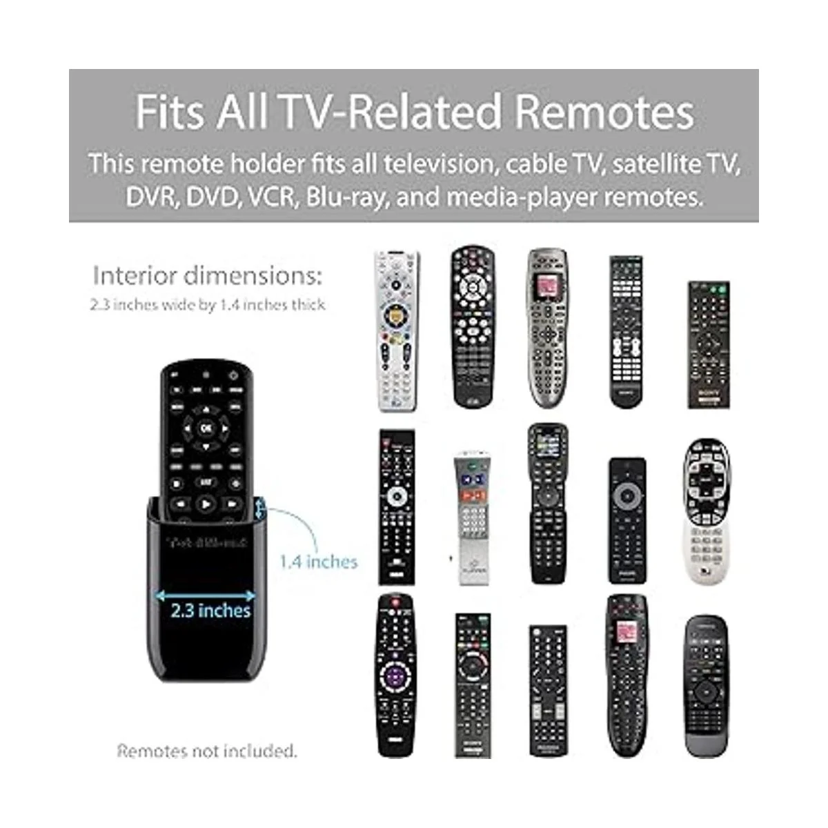Compatible con todos los mandos a distancia relacionados con la televisión incluyendo todos los controles remotos de televisión, TV por cable, TV por satélite, DVR, DVD, VCR, Bluray, Roku y Apple TV. También compatible con controles remotos de ventilador de techo. Los mandos a distancia no están incluidos con estos soportes de control remoto.
