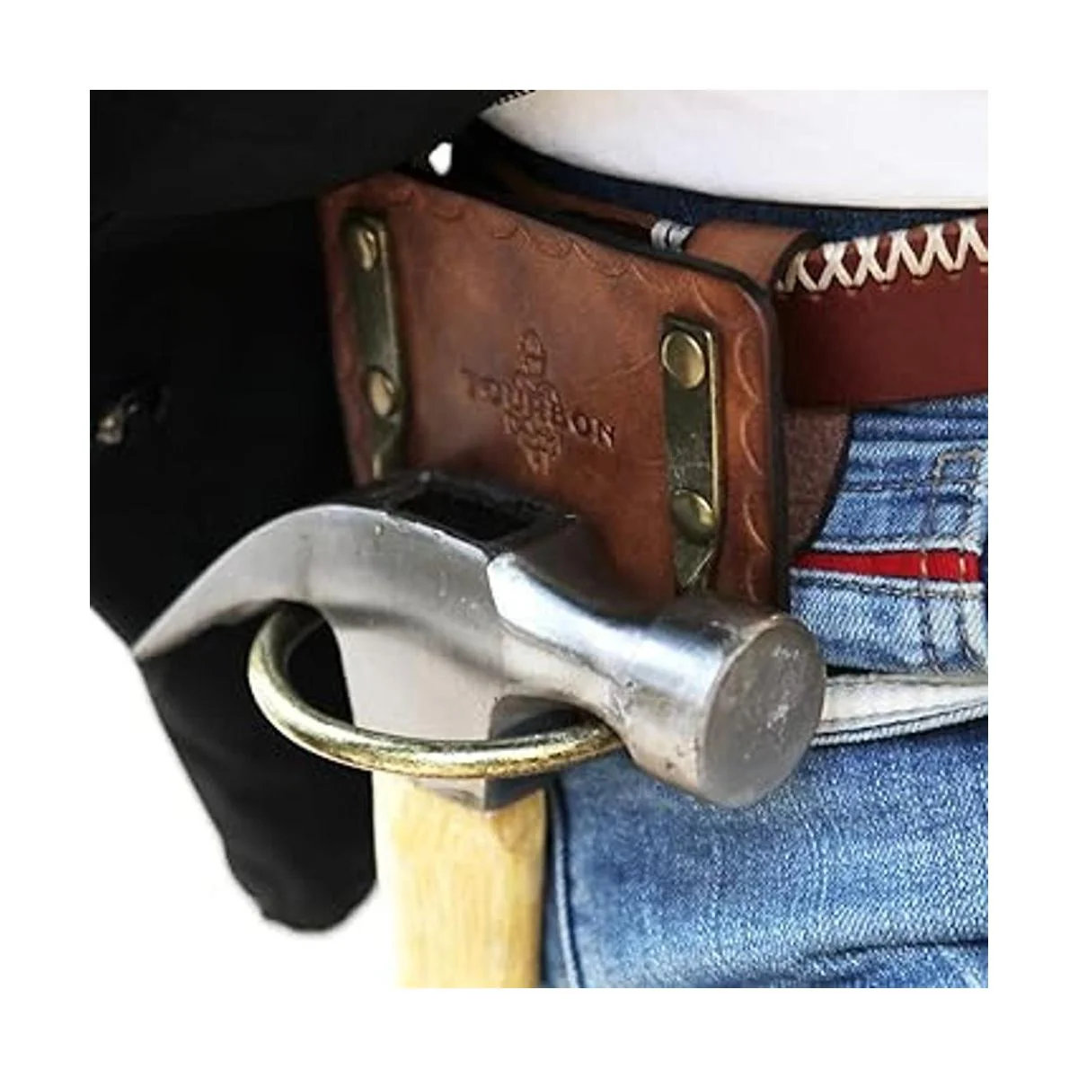 Tourbon Soporte para martillo hecho de cuero de alta calidad con un lazo de acero remachado y estilo cuna