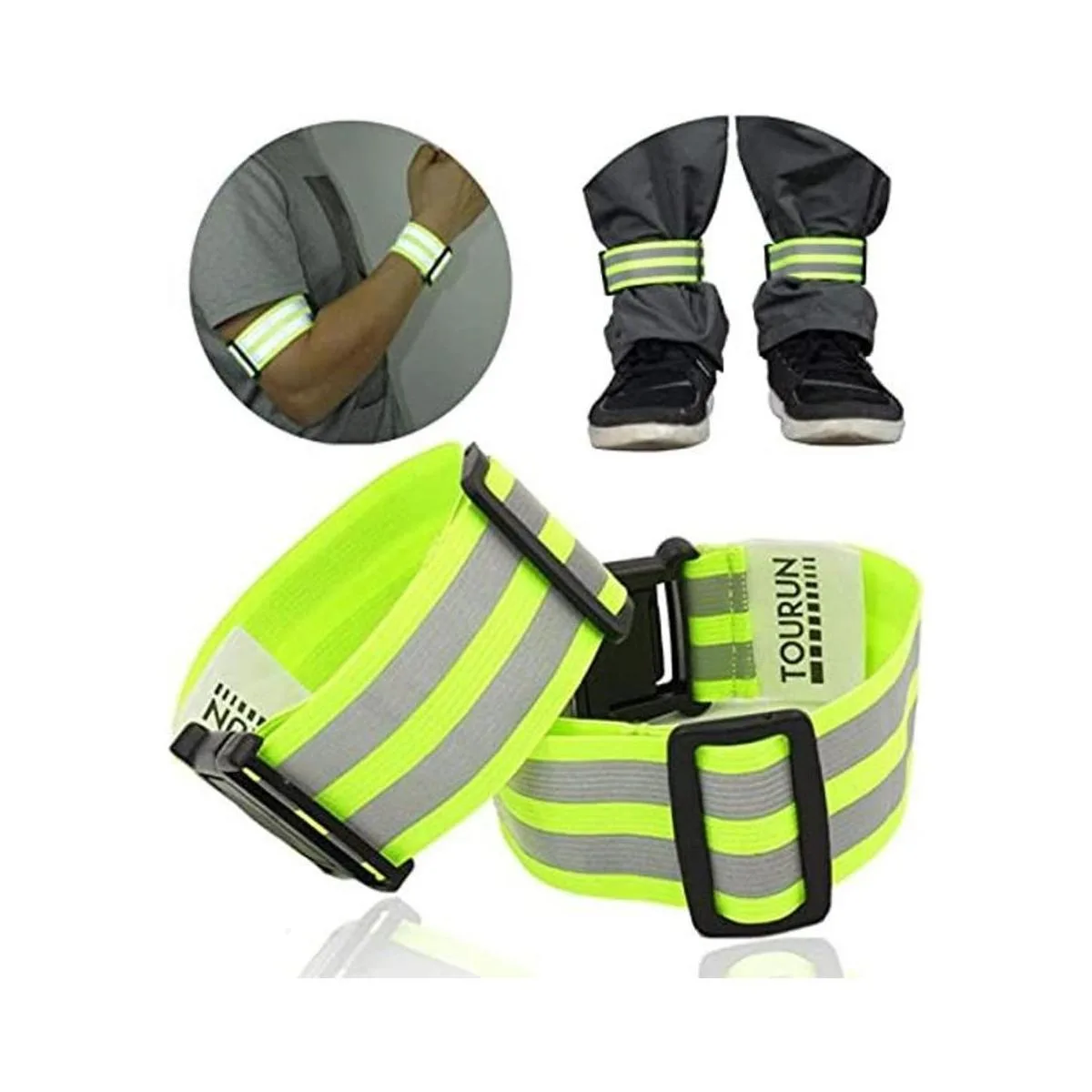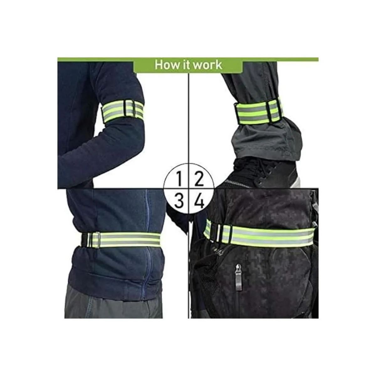 Alta visibilidad para tu seguridad: bandas reflectantes de seguridad con cinta de tela reflectante amarilla que proporciona visibilidad de 360 grados por la noche.