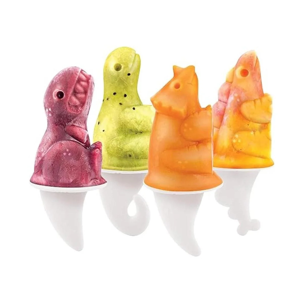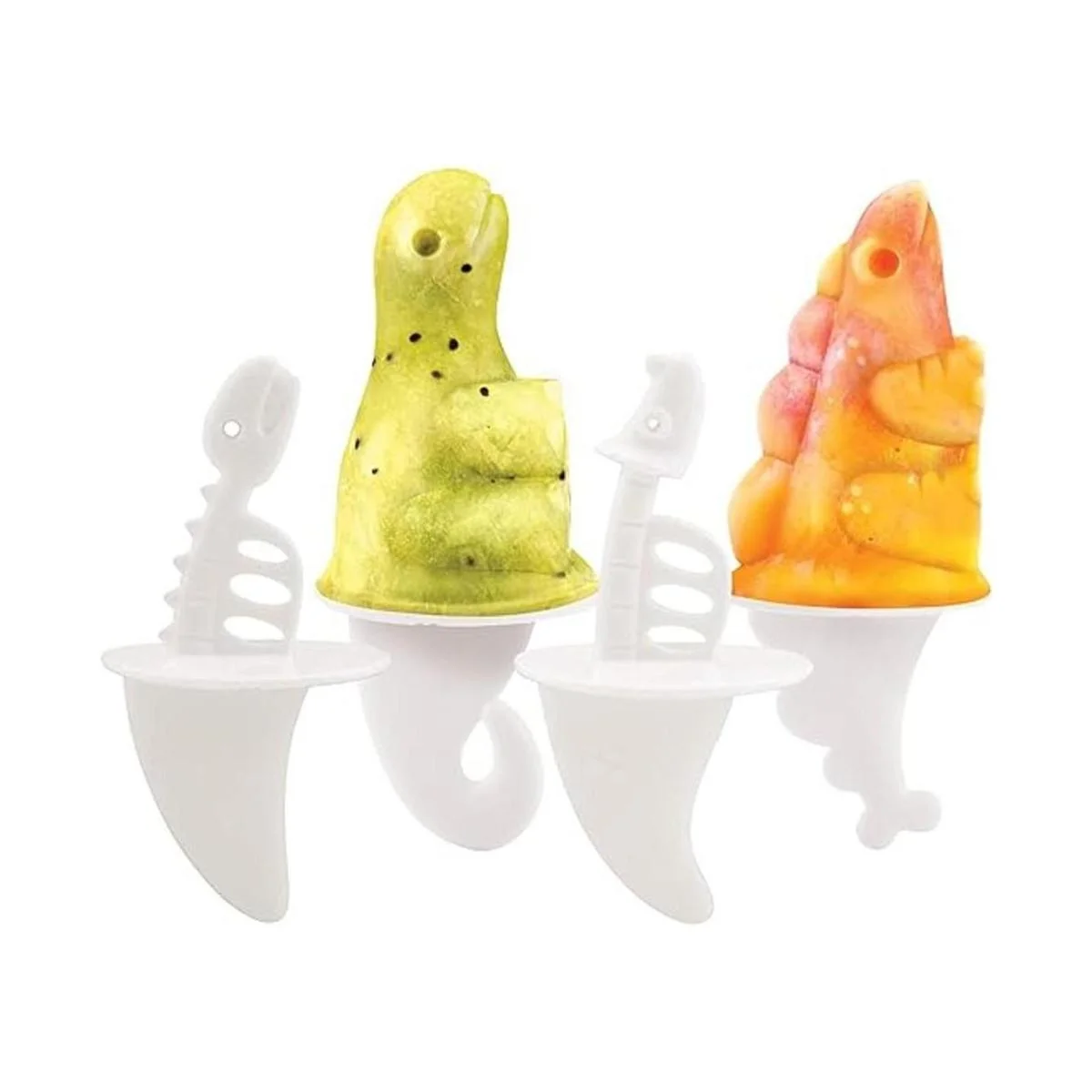 Sorpresa y deleita con palos de fósil: los palos reutilizables tienen forma de fósiles, lo que permite a los arqueólogos descubrir la historia con cada golosina congelada. Las asas tienen forma de colas, a juego con dinosaurios para crear toda una criatura, y los esqueletos únicos replican a los animales jurásicos para una divertida sorpresa al final del dulce.