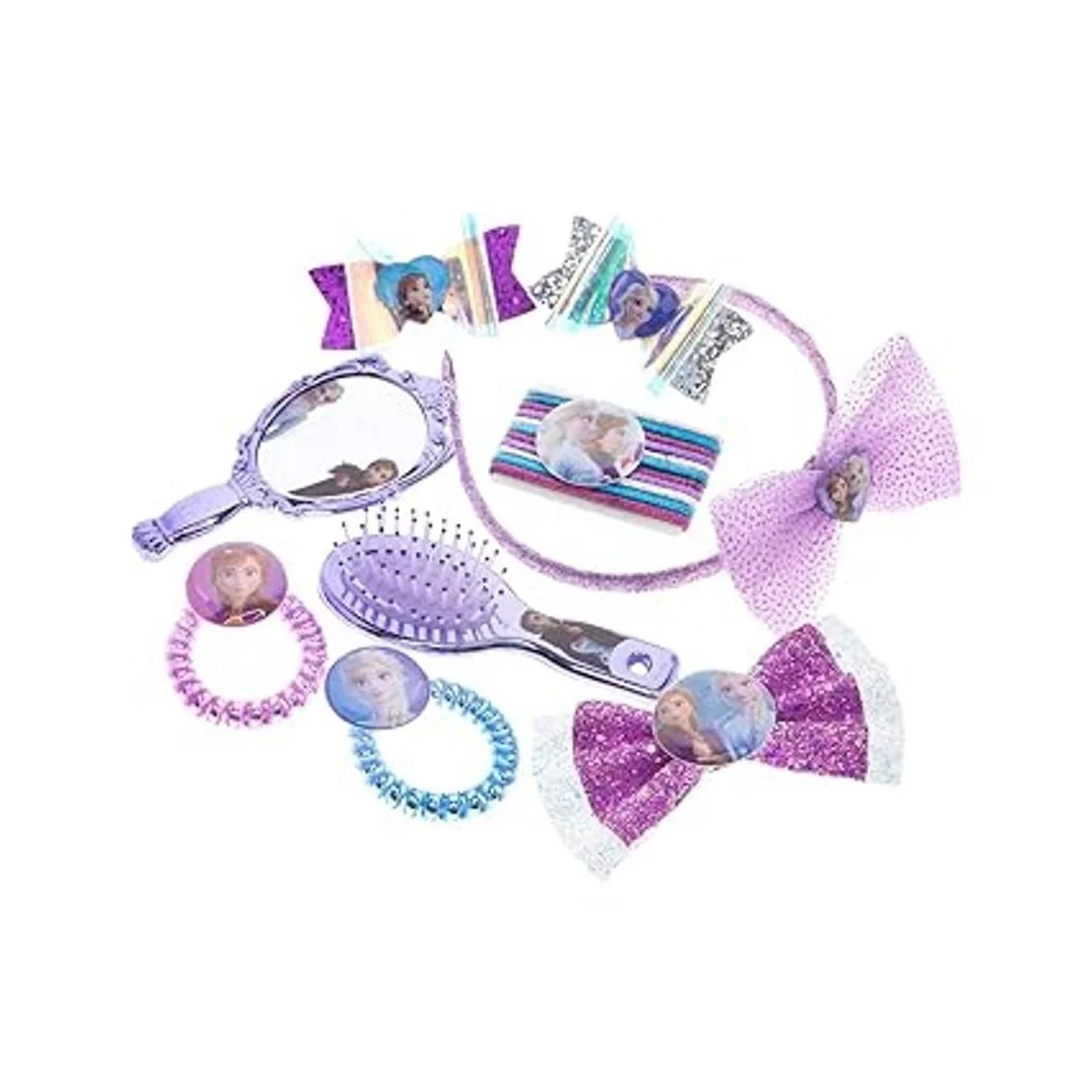 El kit incluye: el juego de accesorios para el cabello incluye 13 lazos para el cabello, 3 lazos para el pelo, 1 extensión de cabello iluminada, 1 diadema, 1 espejo, 1 cepillo para el cabello