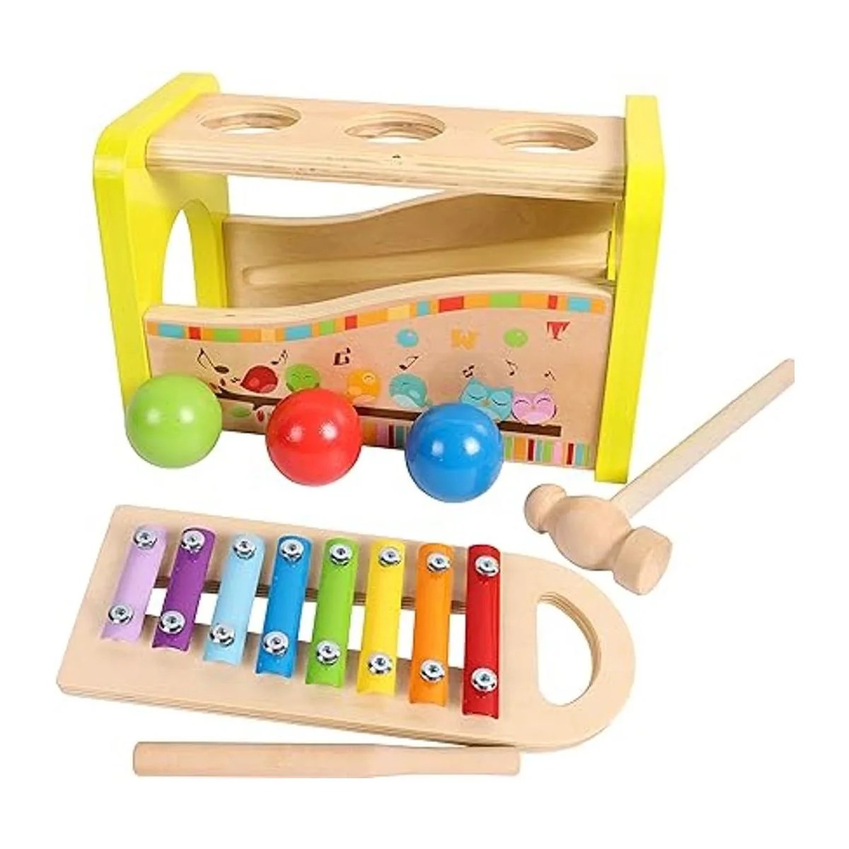 TOWO Juego de bolas de martillo y xilófono de madera, mazo y clavijas, banco de grifo de bola, juguetes para bebés de 1 año de edad, regalo para niños pequeños, juguetes sensoriales de actividad musical para niños