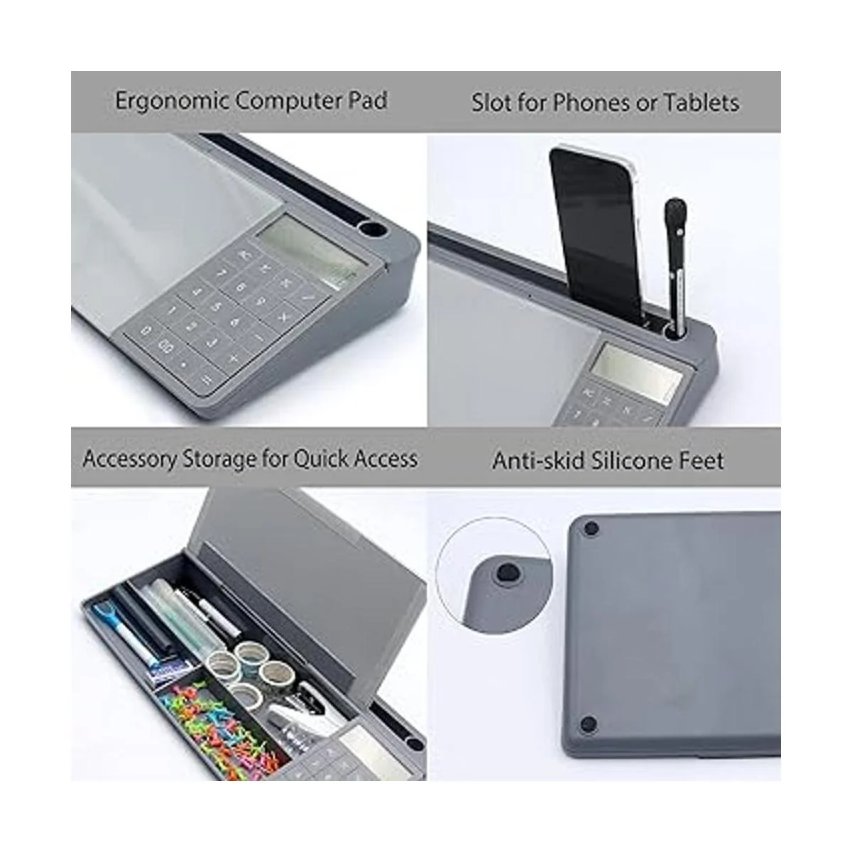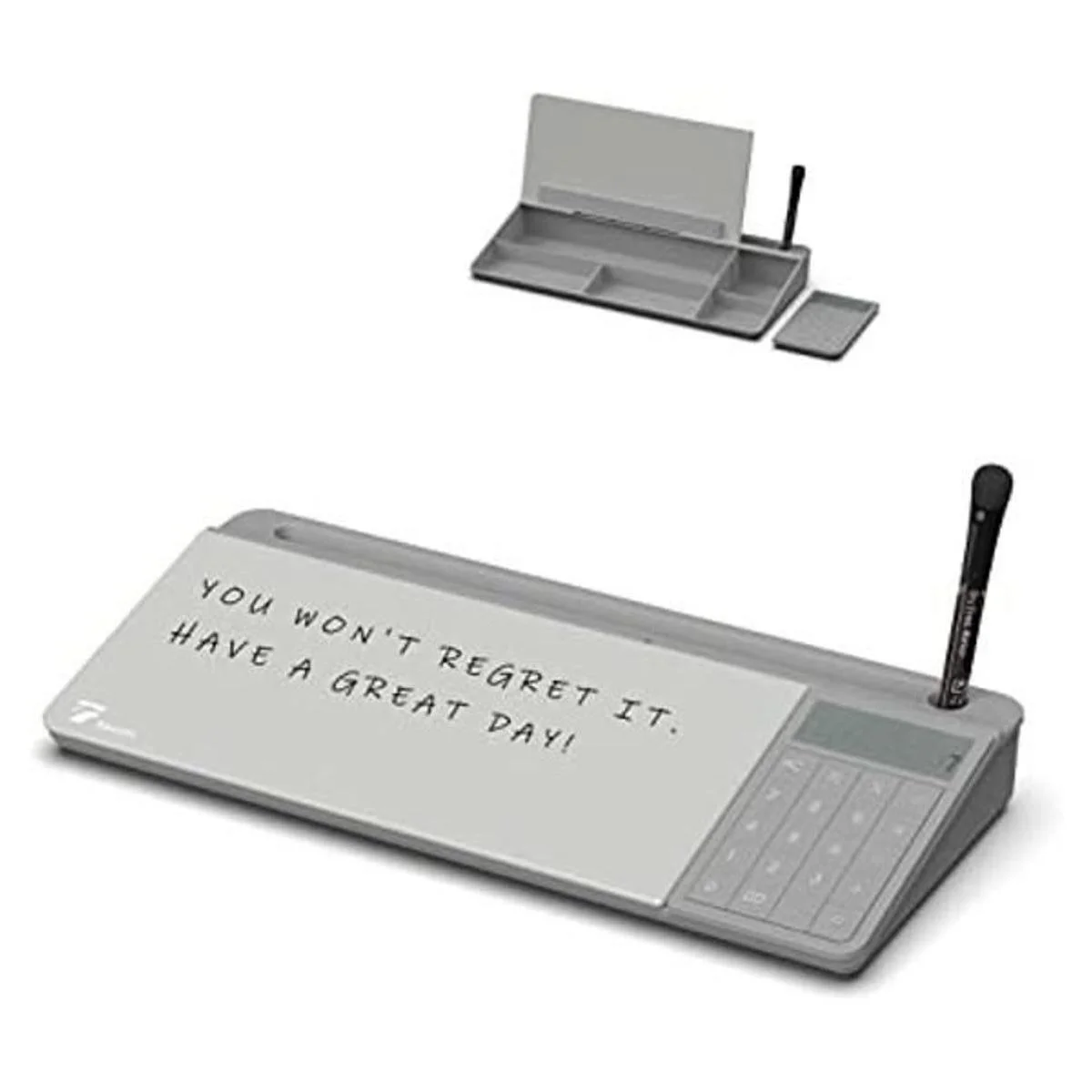 Diseño moderno y elegante: la pizarra blanca de escritorio inclinada es ergonómica. Calculadora básica, compartimentos ocultos, almohadilla/móvil, bandeja de marcador, proporcionando una solución inteligente de almacenamiento y escritura