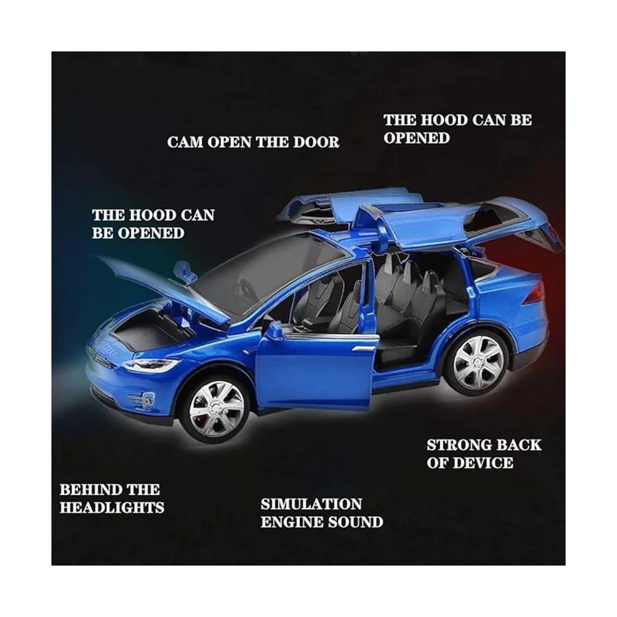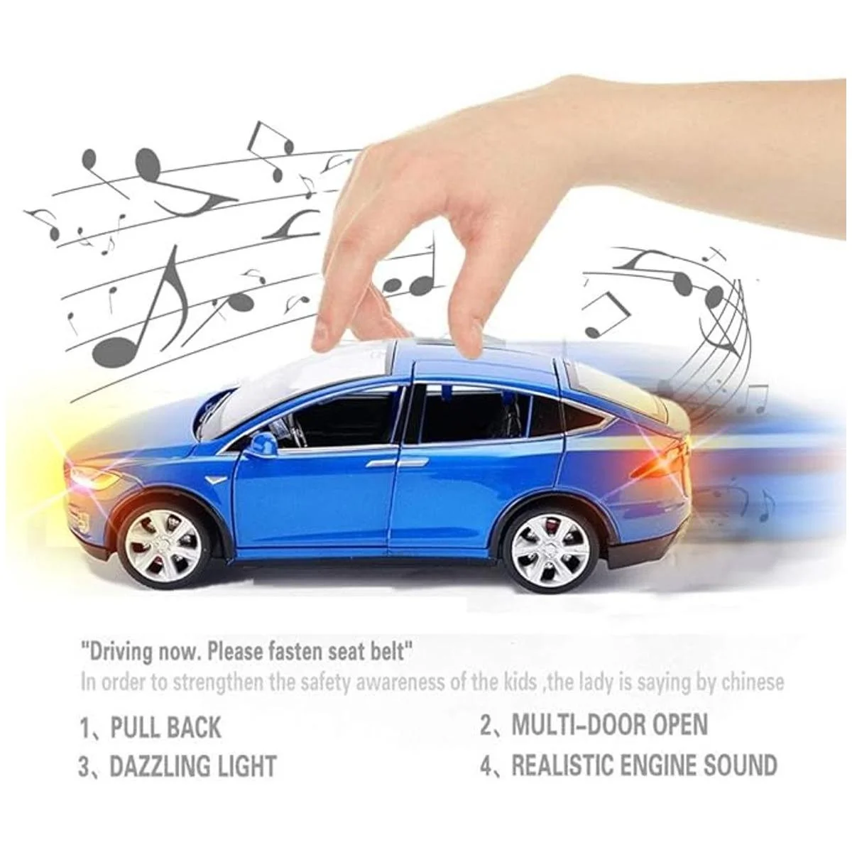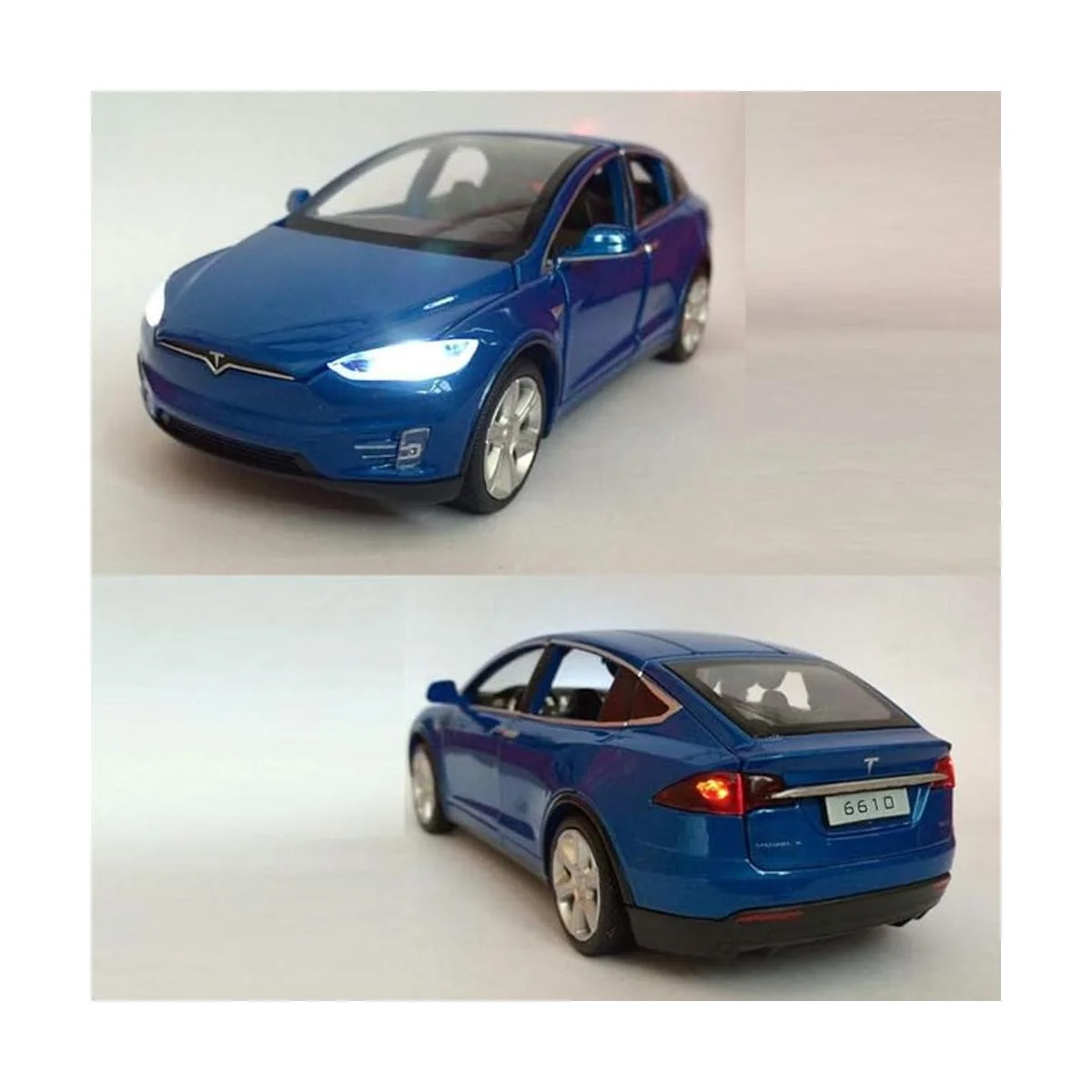 Toy Car Model X, juguetes de coche de aleación con luces y sonido a escala 132 azul