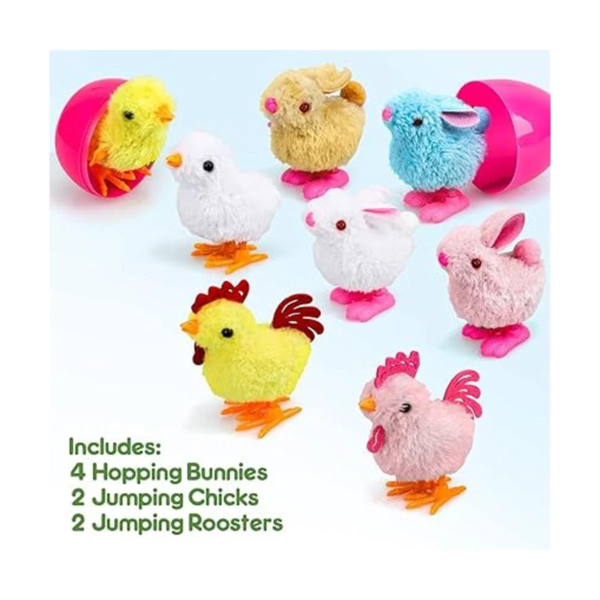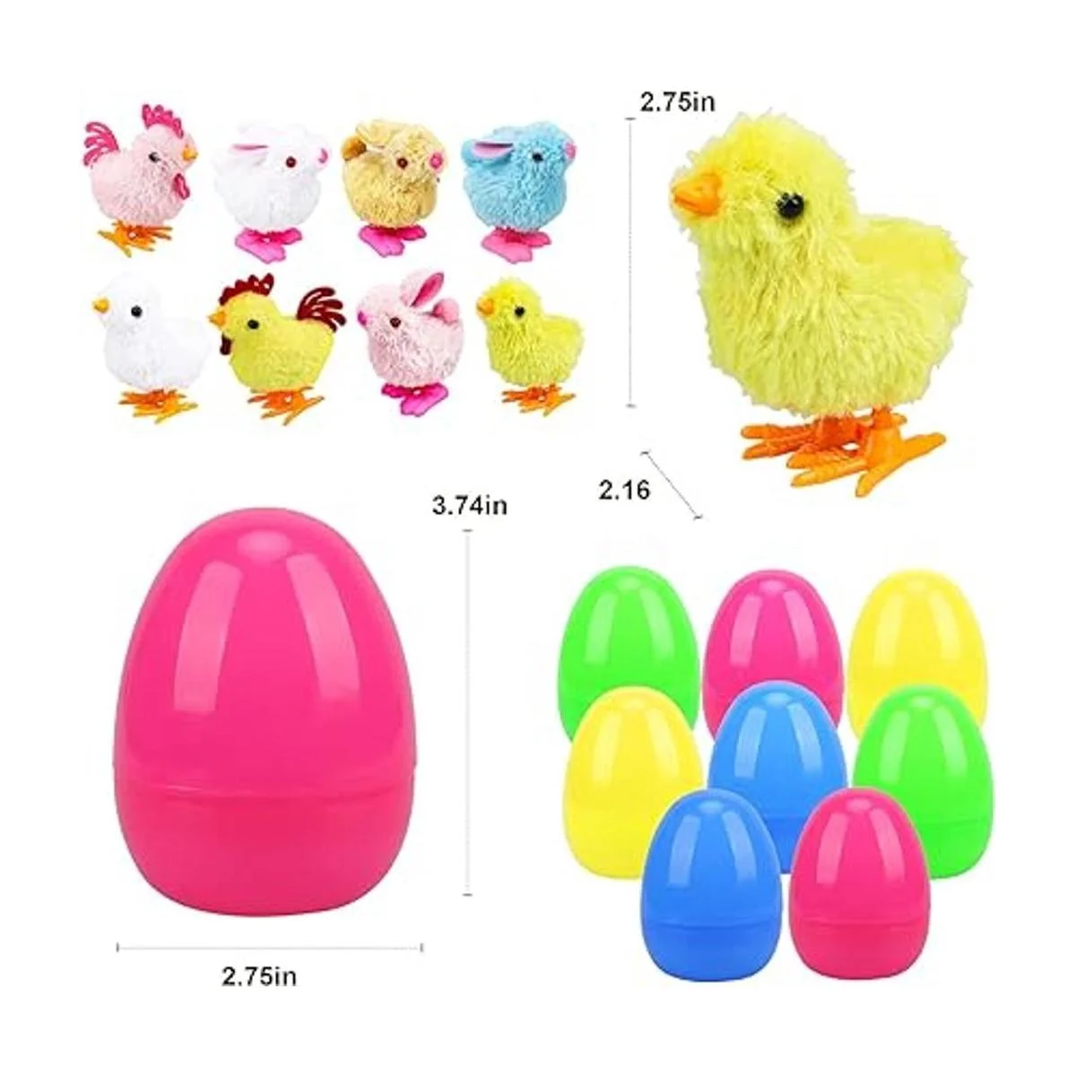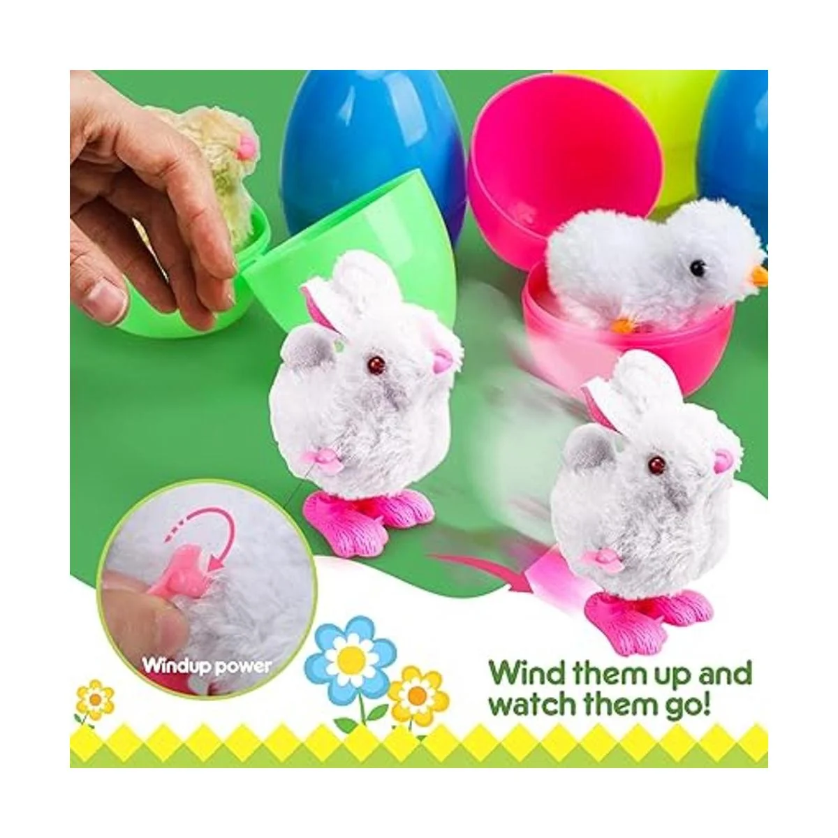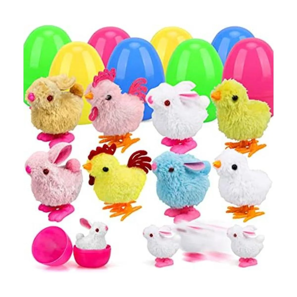 TOY Life Huevos de Pascua rellenos de pollitos y conejitos de felpa, huevos de Pascua de plástico en el interior, relleno de Pascua con juguetes de viento, huevos para caza de huevos, rellenos de cestas de Pascua para niños pequeños