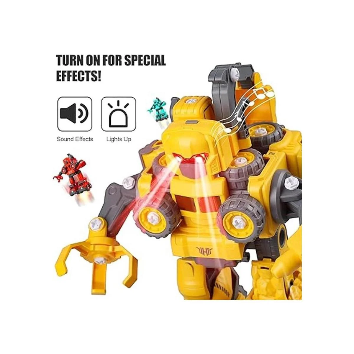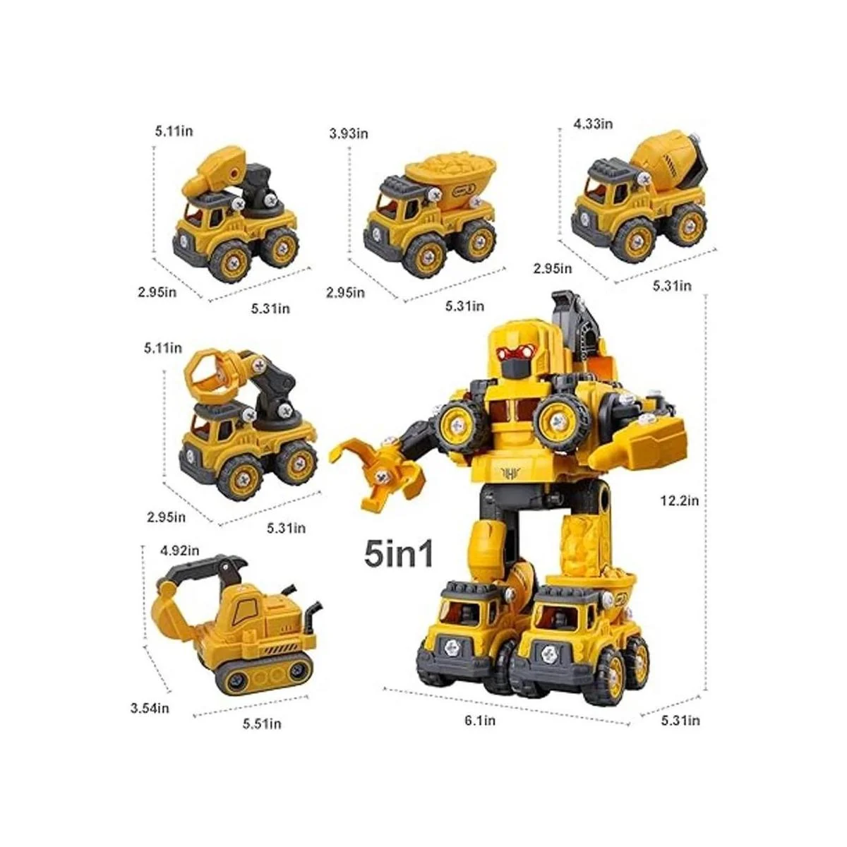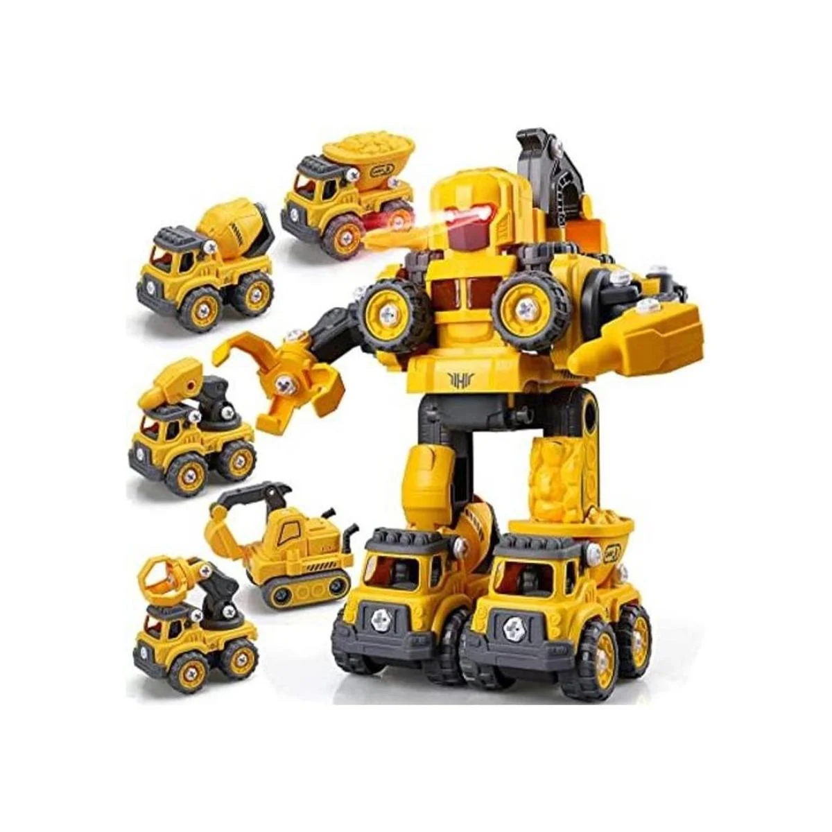 5 juguetes en 1: Prepárate para horas de entretenimiento Este robot transformador de juguetes desmontables para niños de 4 años permite a los niños construir cinco mini camiones de construcción por sí mismos, y luego montarlos juntos para construir un gran robot intermitente de luz, pitido y rodante. Los coches individuales también se pueden jugar por sí solos. Es el juguete educativo perfecto para niños y niñas.