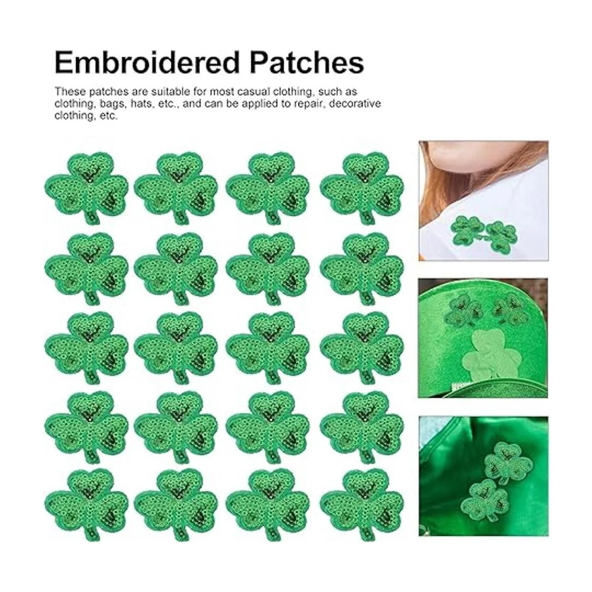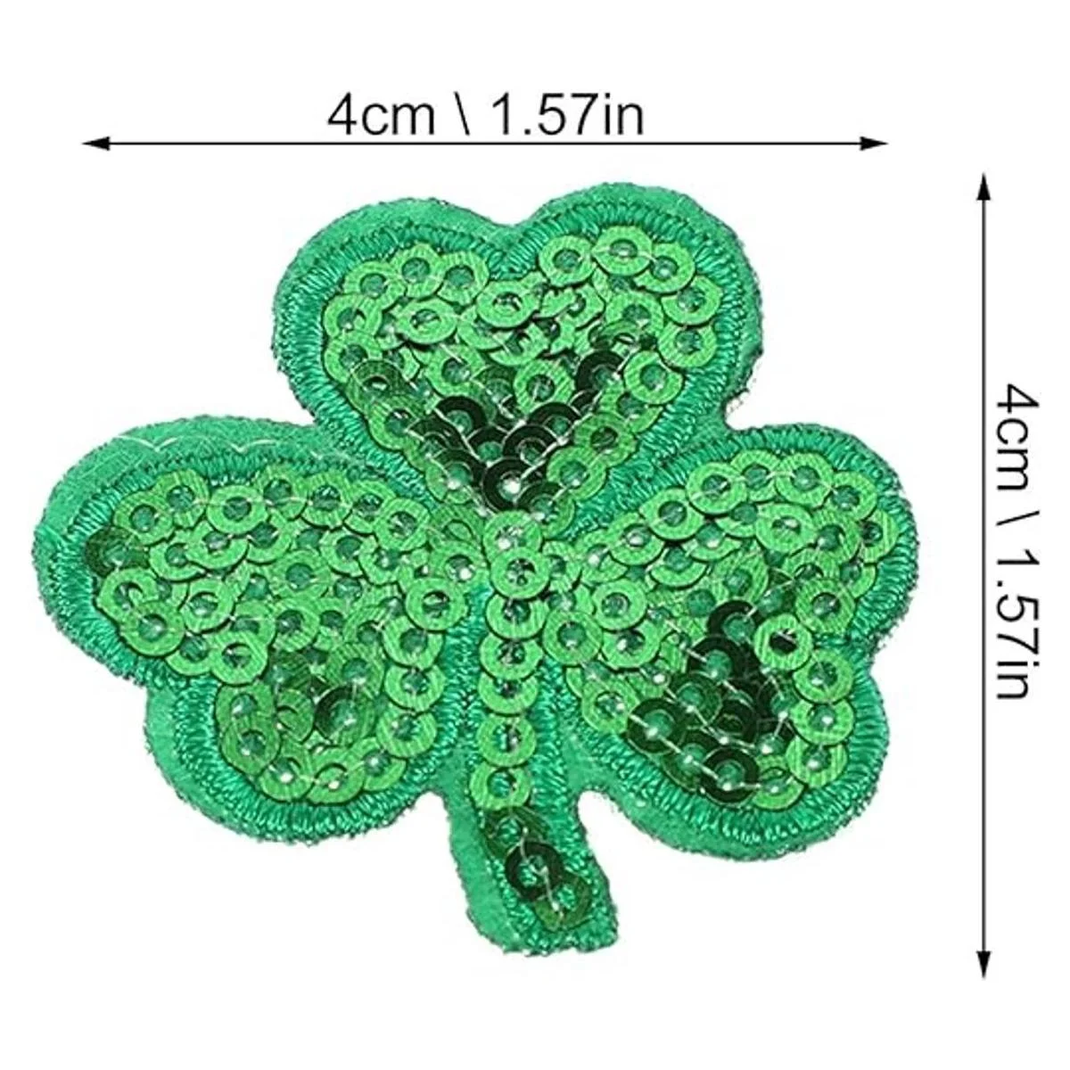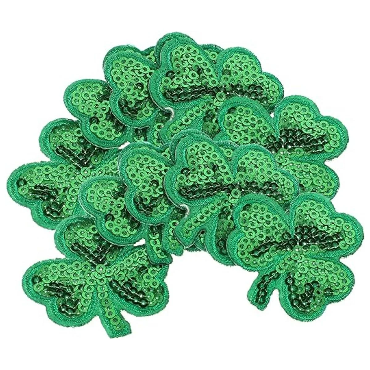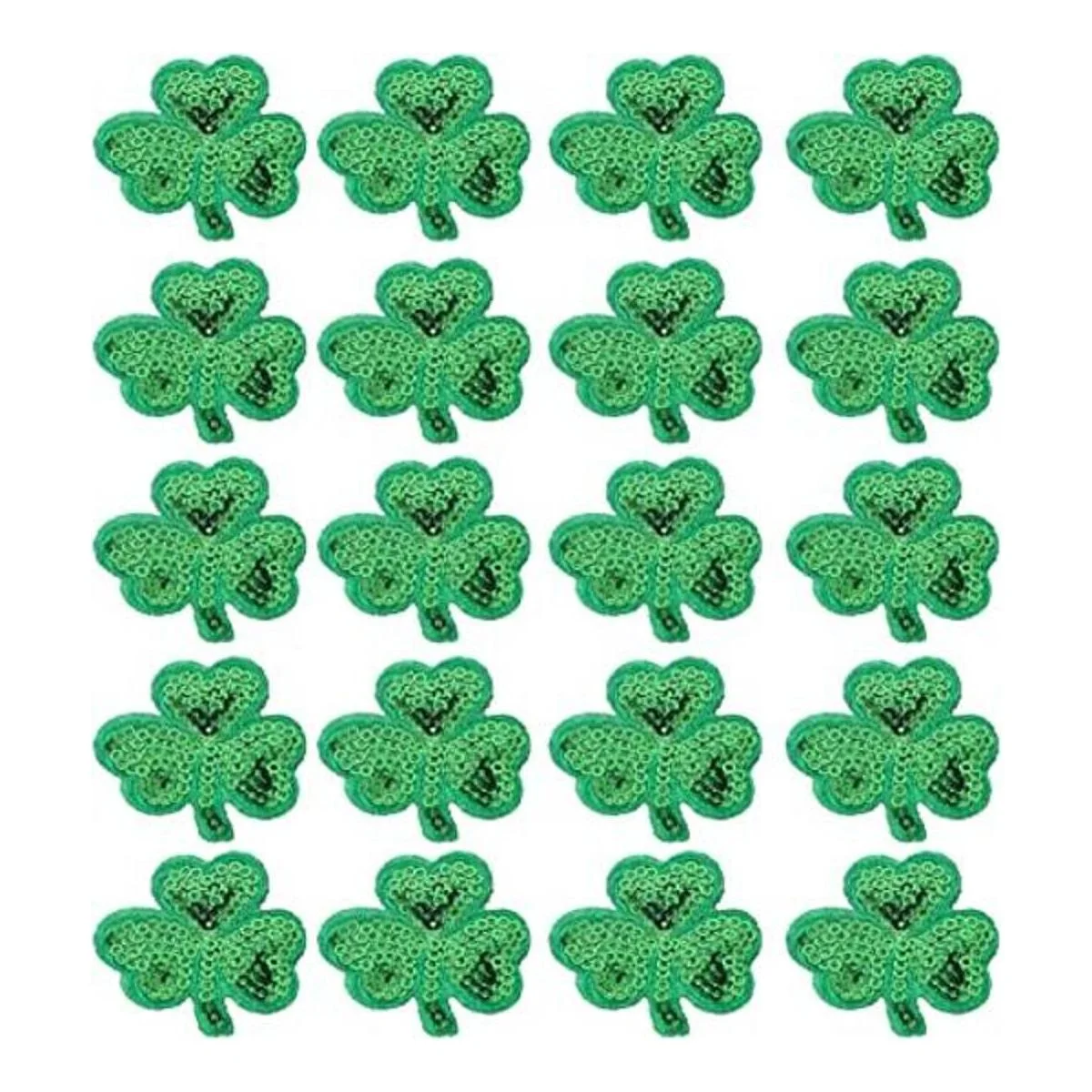 TOYANDONA 20 piezas de lentejuelas trébol plancha en parches de San Patricio ropa de día apliques de costura en bordado parches DIY costura manualidades suministros para ropa decoración de vestido