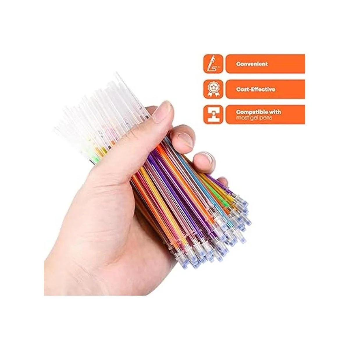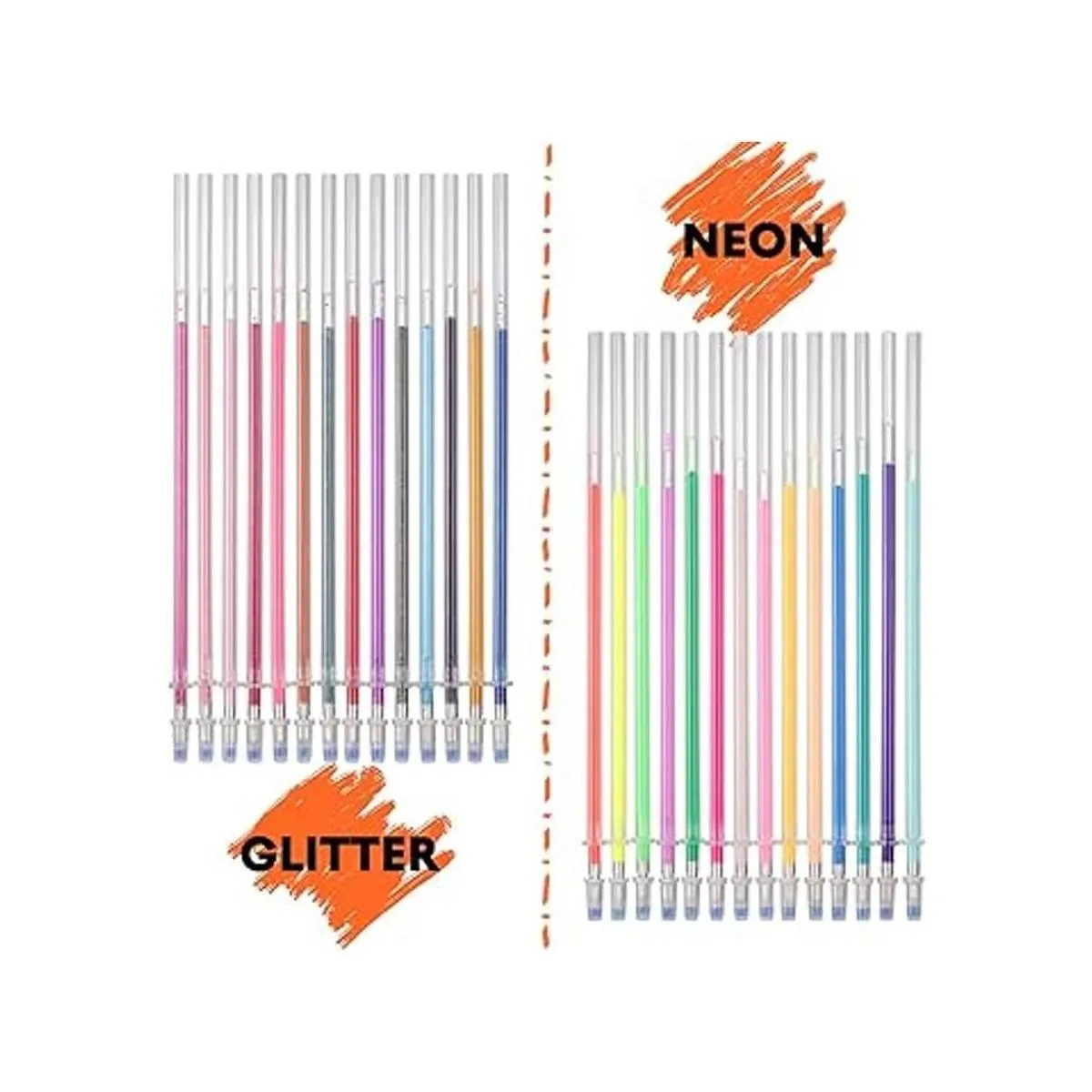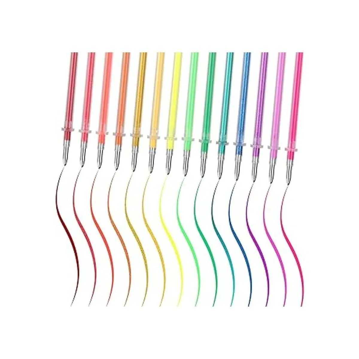 Este artículo es un juego de recambios de bolígrafos de gel de colores. Estos recambios de bolígrafo de gel son compatibles con casi todos los bolígrafos de gel estándar, con protección contra fugas, hermoso color de escritura de buena calidad. Definitivamente satisfarán todas tus necesidades para colorear libros, manualidades, garabatos, álbumes de recortes, tarjetas hechas a mano, álbumes de fotos, revistas, bocetos, diarios y notas de estudio. Toma tus bolígrafos y saca una vida ahora