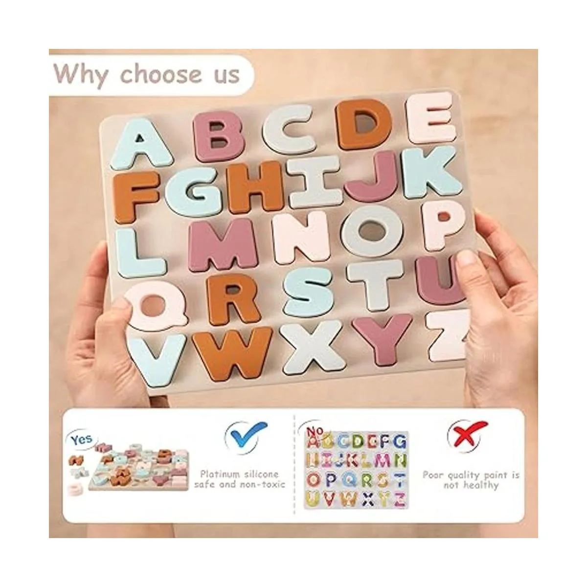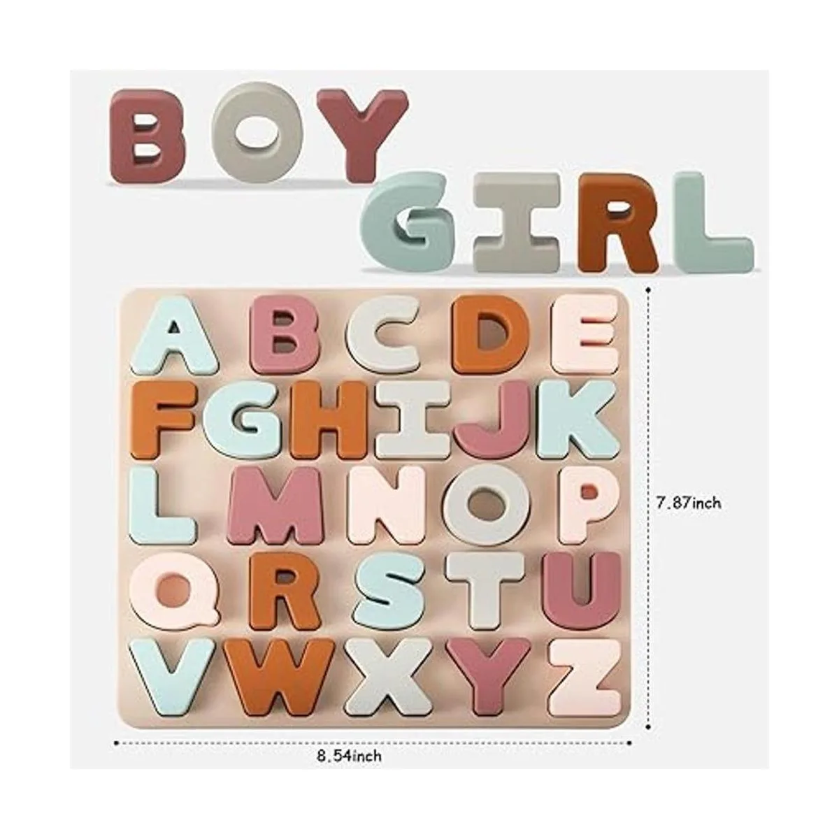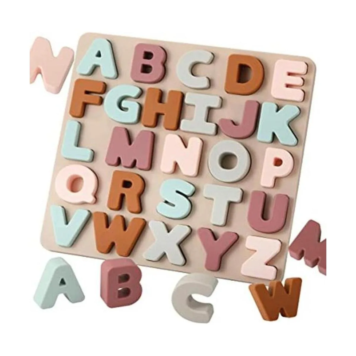 Rompecabezas de alfabeto de silicona: rompecabezas de alfabeto de silicona hecho de gel de sílice 100 de alta calidad de grado alimenticio, que contiene 26 letras mayúsculas suaves, incrustadas en el tablero de rompecabezas de gel de sílice y completa el rompecabezas combinando la forma de las letras con su espacio.