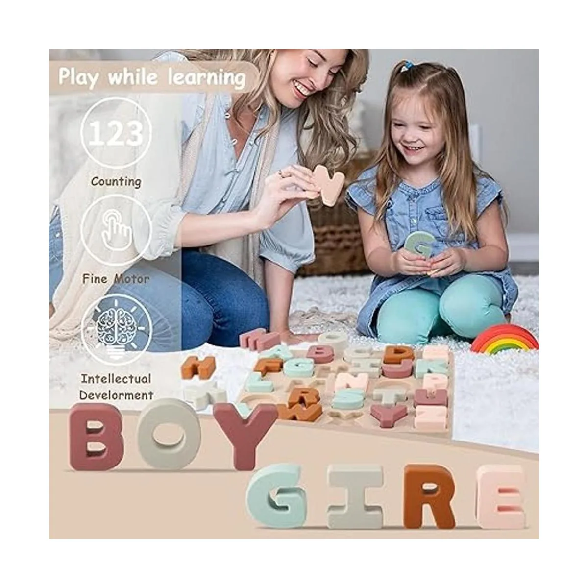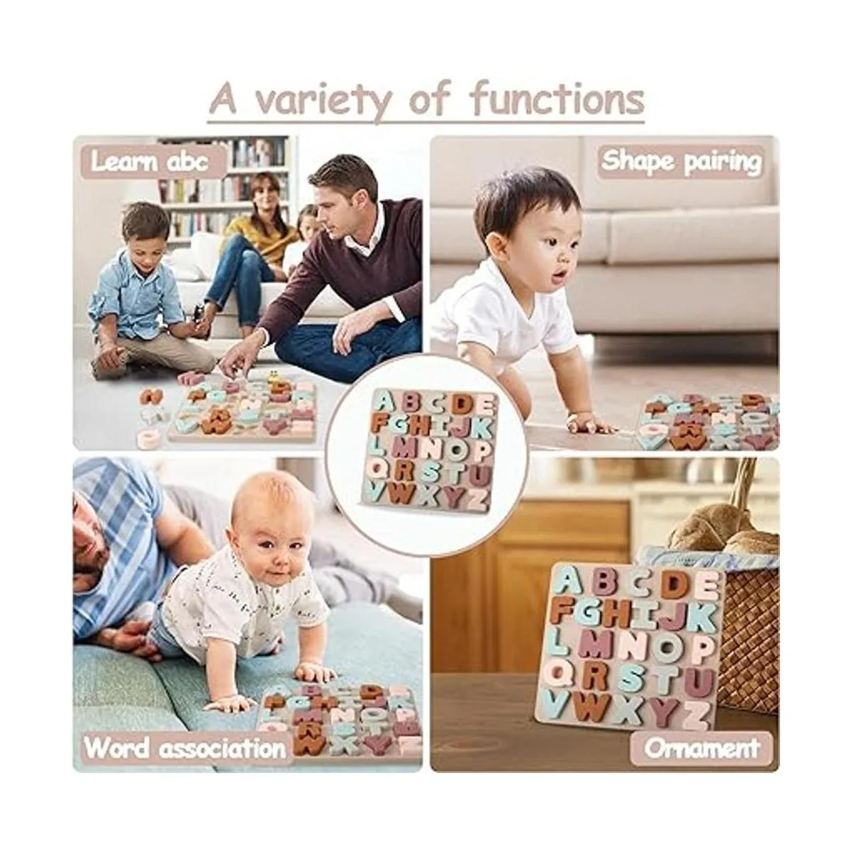 Educación y entretenimiento: rompecabezas de silicona del alfabeto para niños. Este juego de rompecabezas para niños de 2 años es una forma interesante de aprender mientras juegas para mejorar las habilidades cognitivas y de coordinación de los niños.