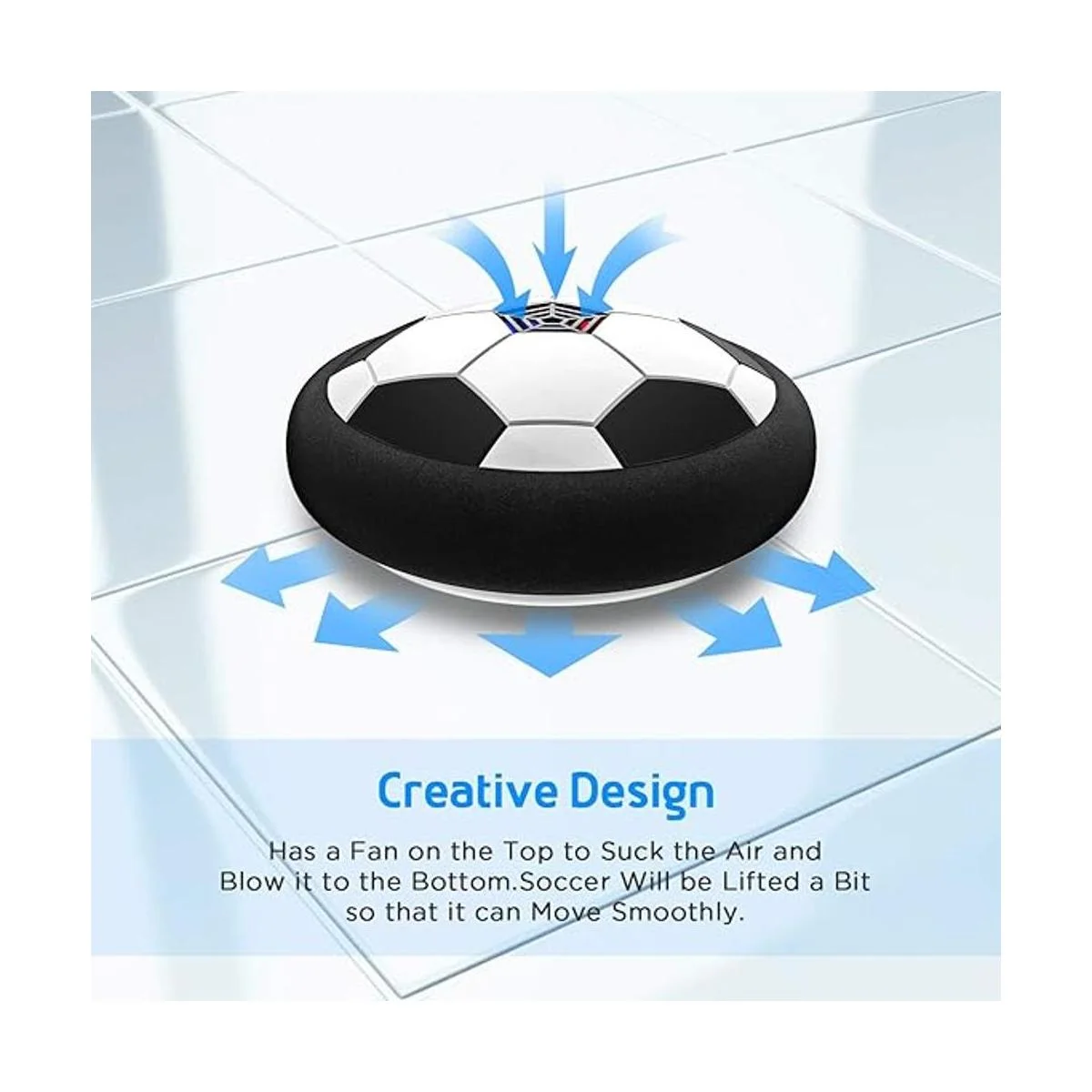 Es fácil de usar, sé como el fútbol real Un potente flotador de ventilador permite que se deslice por la mayoría de superficies planas, como suelos de madera dura, azulejos, alfombras. Sé un buen juguete de interacción entre padres e hijos, ya que puedes jugar con los niños juntos. Proporciona tiempo para disfrutar y hacer ejercicio para todas las edades.