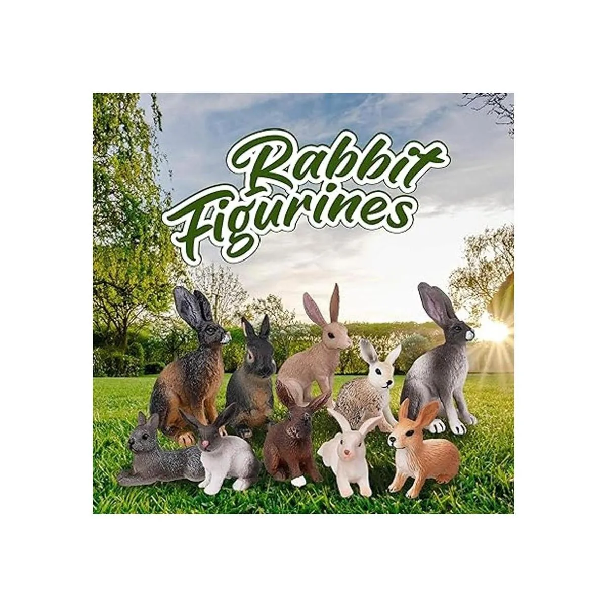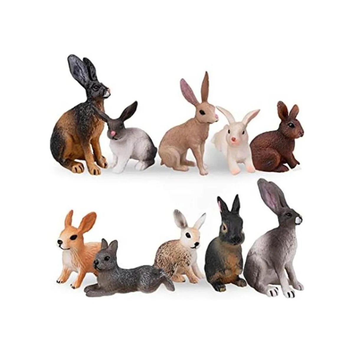 Juguete de figuras de conejo HARE Incluye 2 conejos de chinchilla, 6 liebres y 2 figuras de conejo en diferentes colores y posturas.