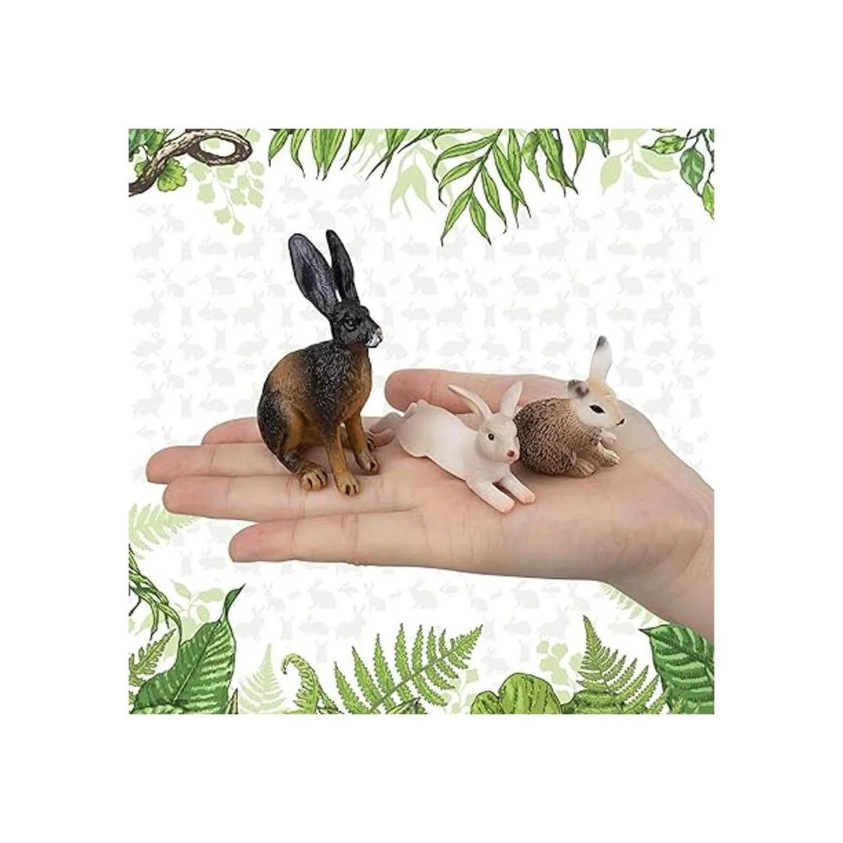 Detalles realistas de conejo de liebre: este juego de figuras de liebre está hecho a mano con aspecto realista detallado, cara bonita y ojos infantiles. Sus texturas moldeadas únicas y detalles ricamente pintados hacen que los animales sean vivos.