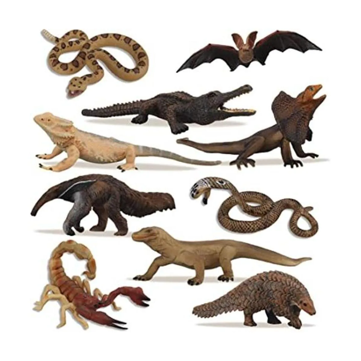 TOYMANY Juego de 10 figuras de animales de reptiles tropicales, juego de figuras de animales de la selva de anfibios de sangre fría, con serpiente de lagarto dragón, regalo de Navidad, regalo de cumpleaños, proyecto escolar para niños pequeños