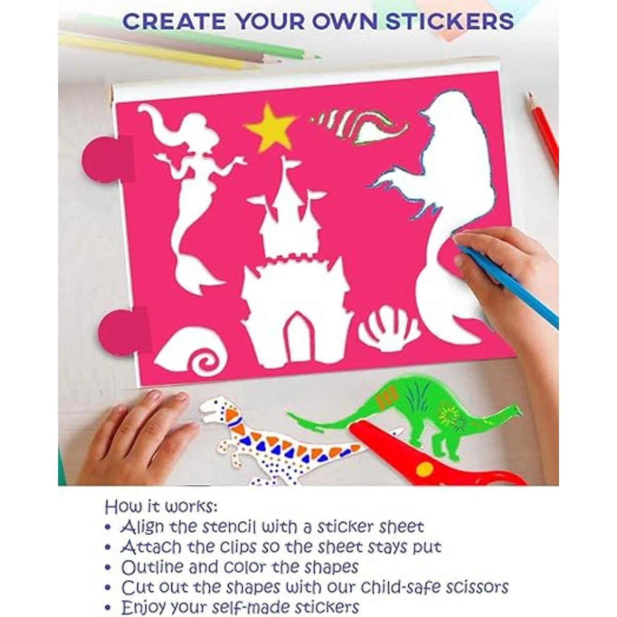 Desarrollo de habilidades motoras finas: simplemente inserta la hoja de calcomanías entre el zócalo y la plantilla, aplica los clips, delinea las imágenes y corta las formas en tus propias calcomanías para una experiencia de trazado creativa sin fallos. Juego de plantillas de dibujo antideslizantes para niños de 4 a 8 años o para niños pequeños avanzados, preescolares o niños con retrasos OT.