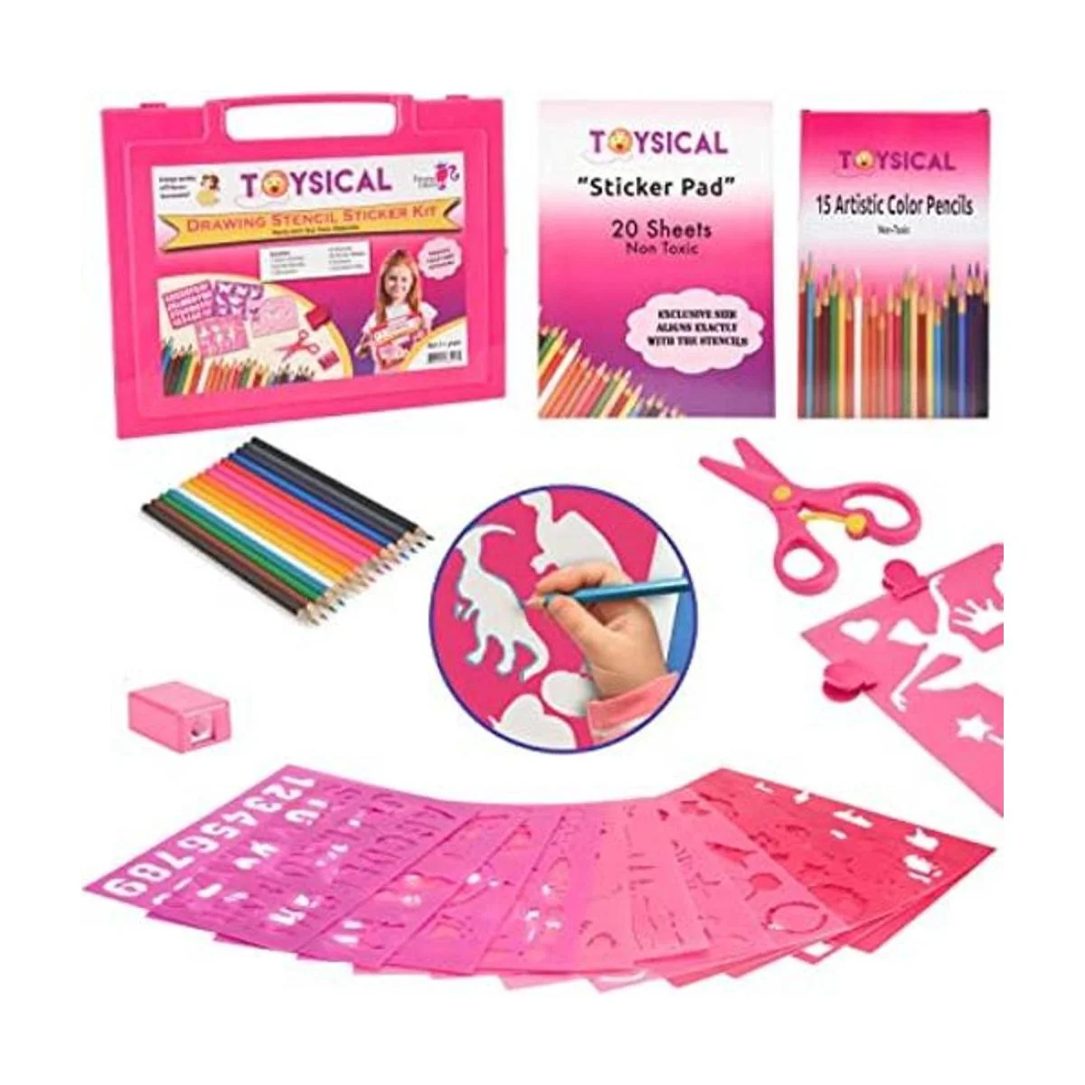 Toysical Juego de plantillas de dibujo para niños con hojas de calcomanías, regalos para niñas de 2, 3, 4, 5, 6 y 7 años, kit de actividades y arte N manualidades, impresionante para cumpleaños rosa