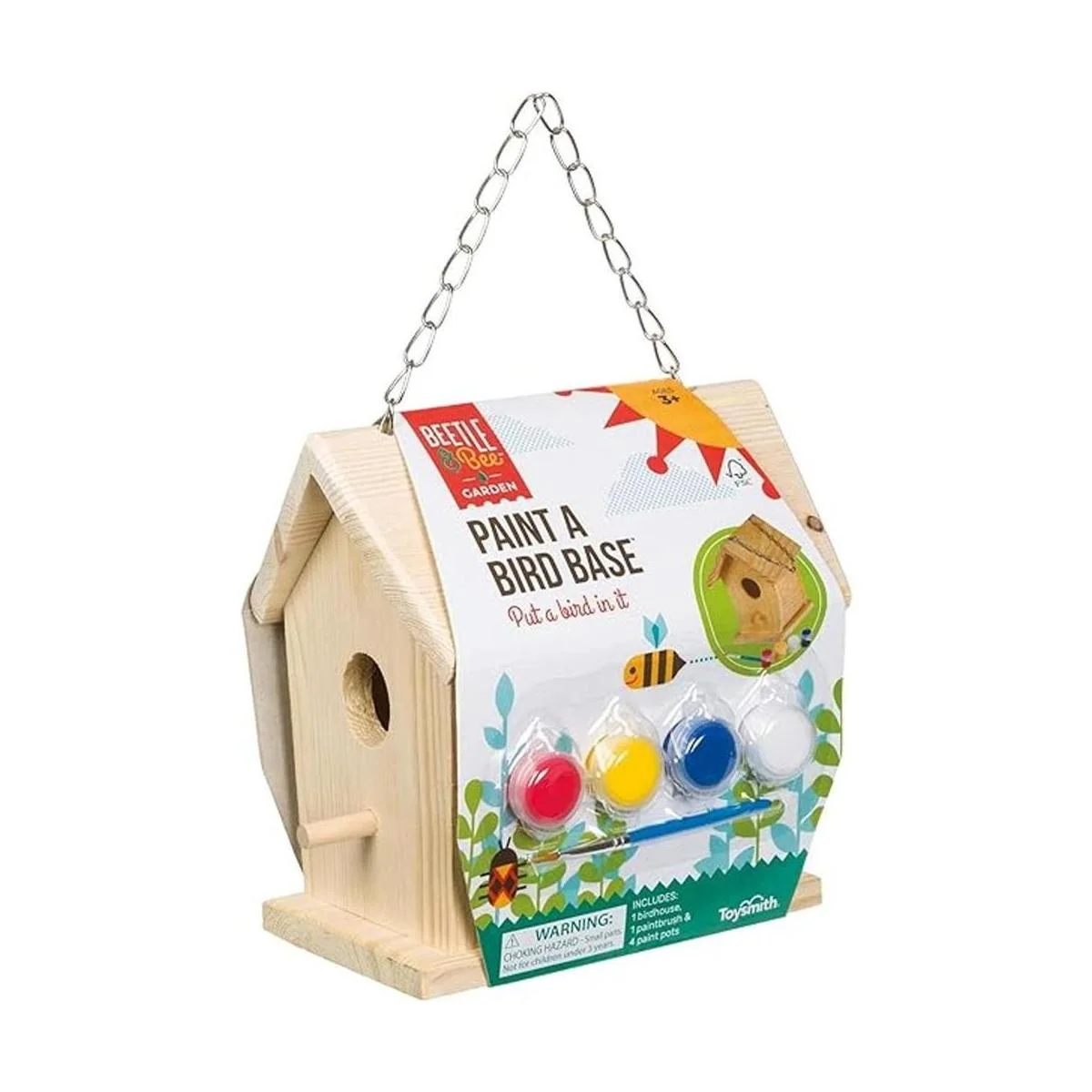 Toysmith Beetle Bee Paint A Bird Base Juego de manualidades de bricolaje para niños, para exteriores, de casa para pájaros, de 5.25 x 7 x 6.5 pulgadas; completamente ensamblada para decorar; incluye 4 pinturas, 1 brocha, cadena para colgar en árboles, a partir de 3 años.