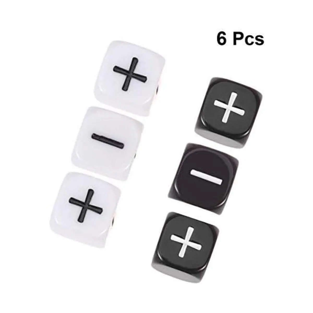 Toyvian Juego de dados para maestros de matemáticas, cálculo de dados menos signo más signo de dados juguetes para niños en el salón de clase, suministros de enseñanza de bar, juego de 6 piezas