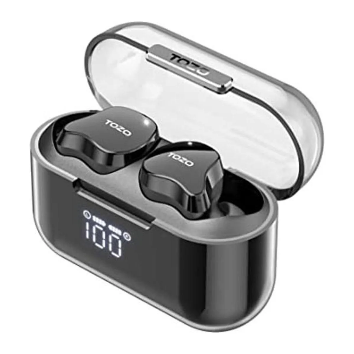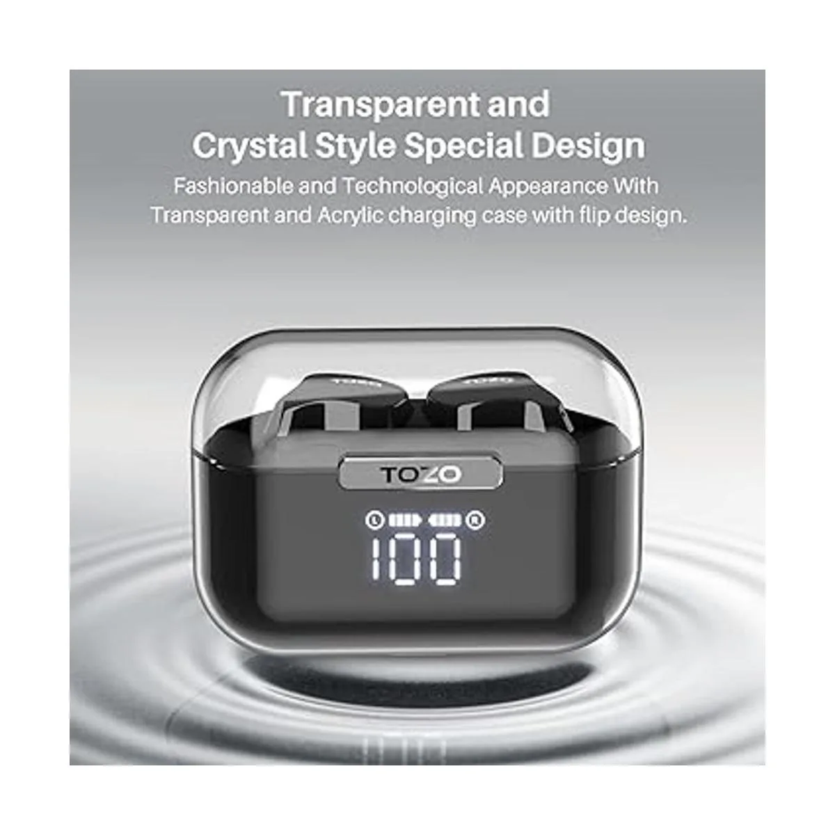TOZO Crystal Buds Bluetooth 5.3 True Wireless Stereo Auriculares IPX7 Impermeables Auriculares Intrauditivos Call Reducción de Ruido Auriculares con Pantalla Digital y Funda Transparente Auriculares Largos Espera, Negro