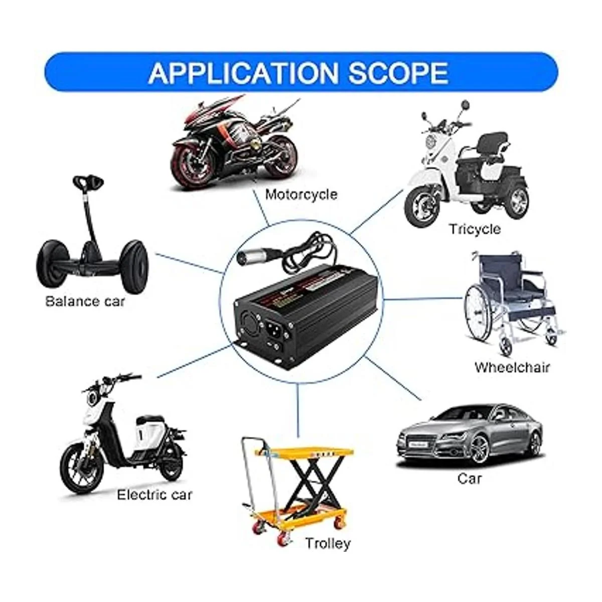 Amplias aplicaciones: mantenedor de cargador de batería inteligente que está diseñado para baterías AGM, GEL, SLA, VRLA y plomo ácido y adecuado para cargar la silla de ruedas, motocicleta, bicicleta eléctrica, cortacésped marino de barco con voltaje 12/24/36/48.