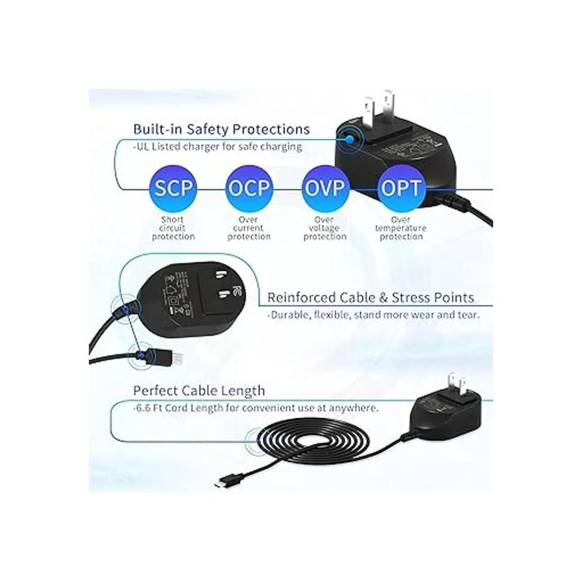 Característica del producto Salida máxima: 5 V, 2 A, 5 W, 9 W, 10 W; Rango de voltaje de entrada: 110 240 V. Longitud exacta: 4.9 ft. Se puede utilizar cómodamente en cualquier lugar: viajes, hogar, oficina, coche. El cable cargará tus dispositivos de micro alimentación fácilmente.