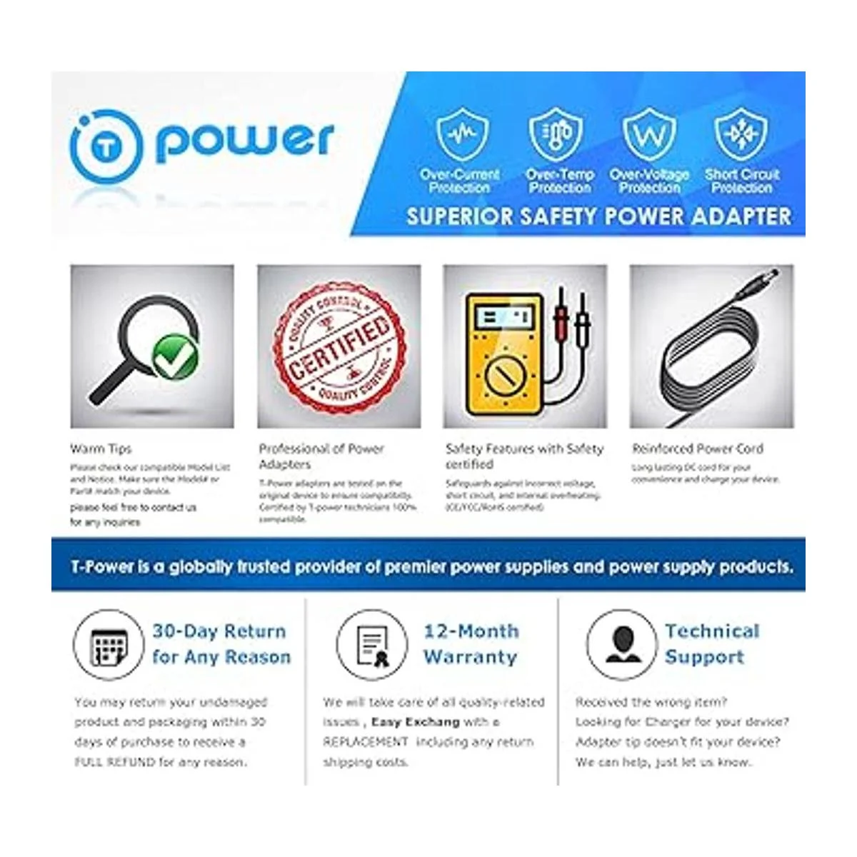 TPower TM Fabricado con la más alta calidad. Rango de voltaje de entrada: CA 100 V 240 V, cable de alta calidad Este adaptador tiene 60 días de garantía limitada