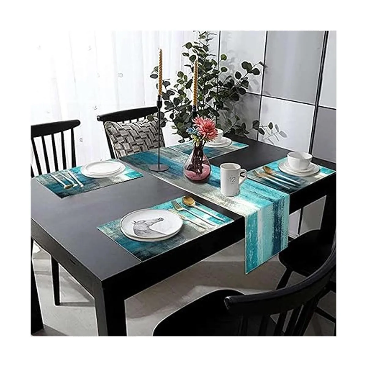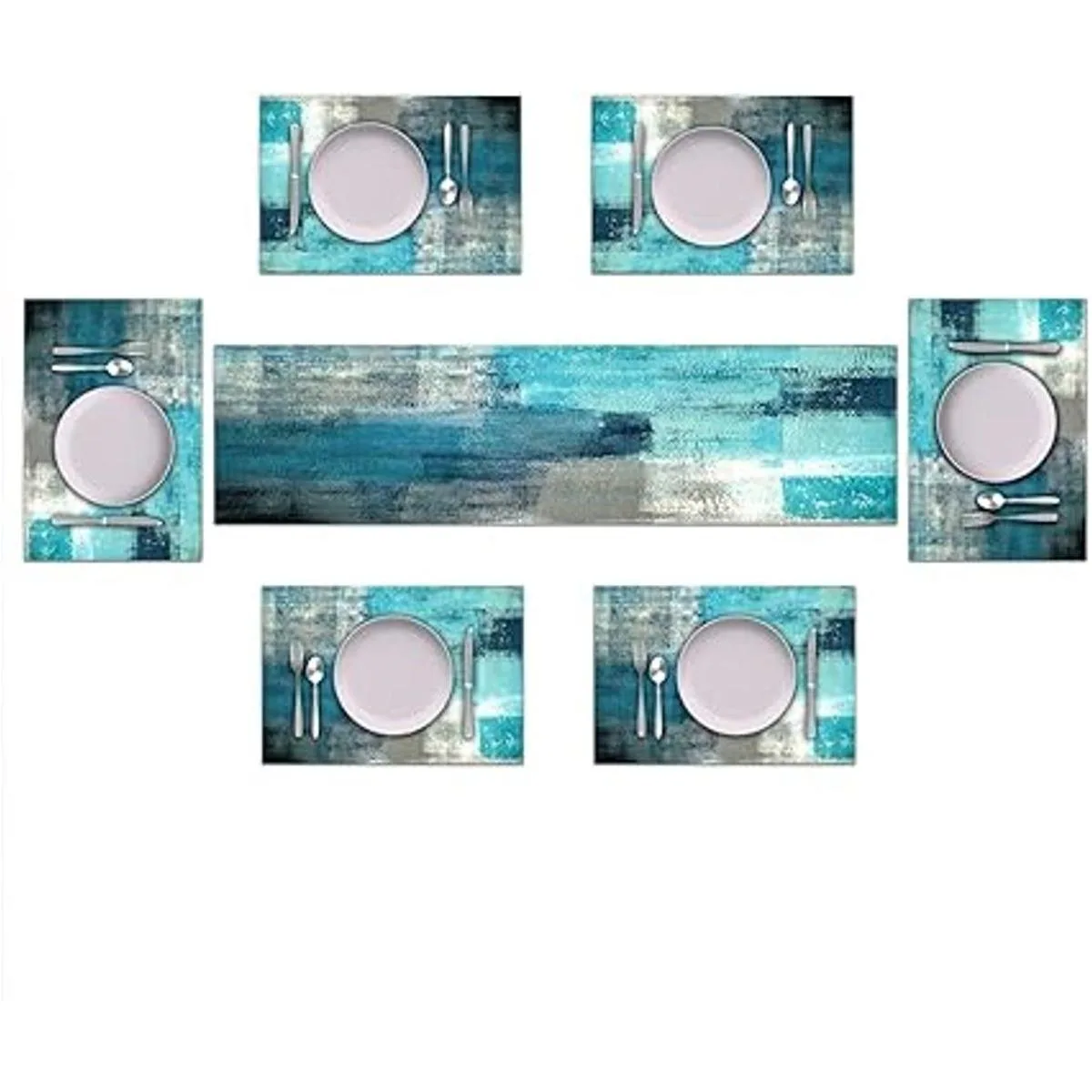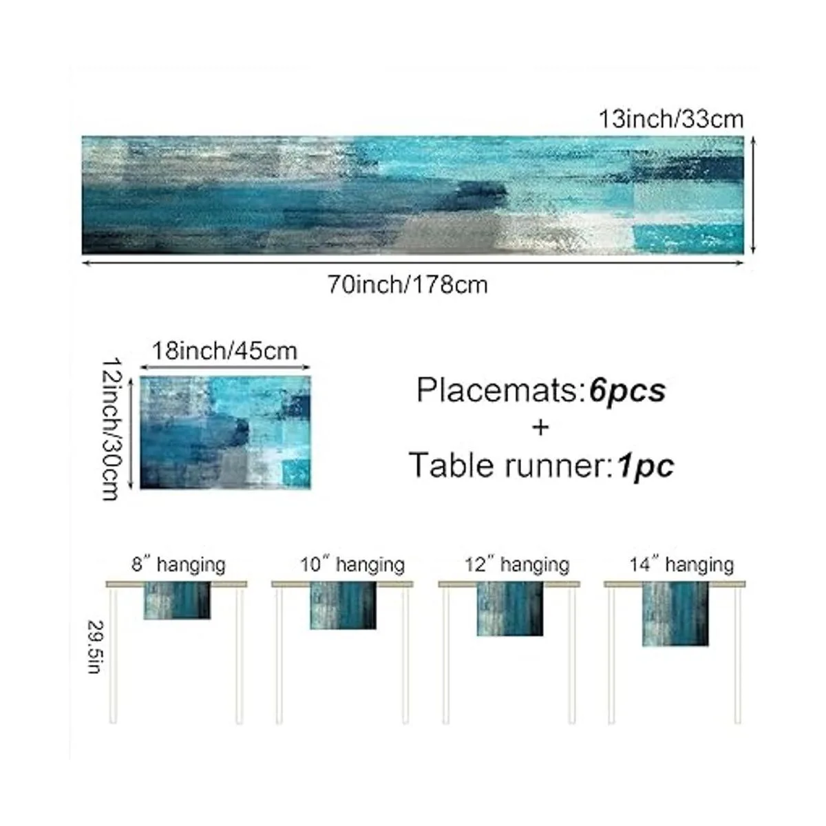 TQFZP Juego de 6 manteles individuales abstractos de color azul azulado, juego de 6 manteles individuales de tela de granja, color azul y gris, estilo vintage, modernos, lavables, decoración del hogar, 70 pulgadas de largo