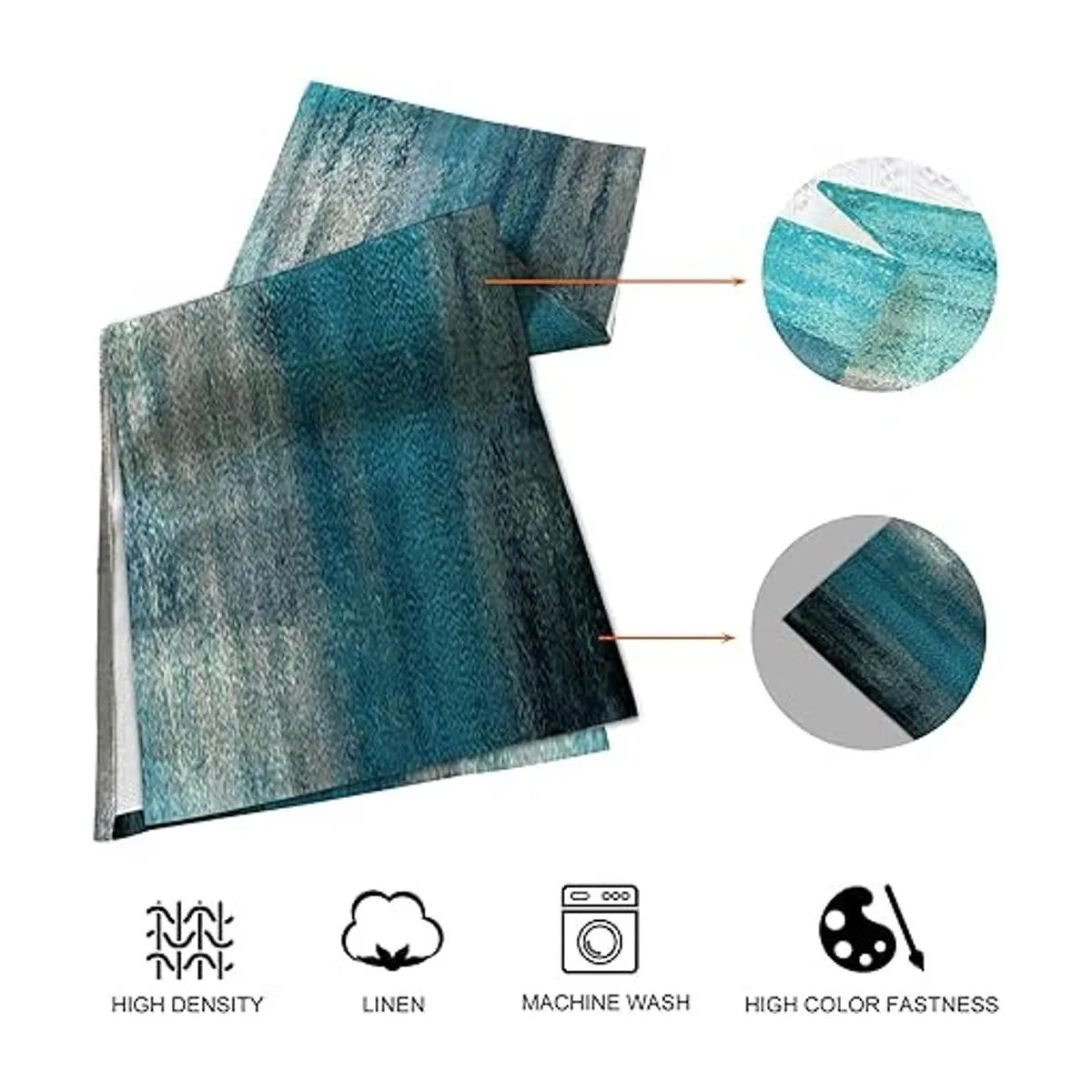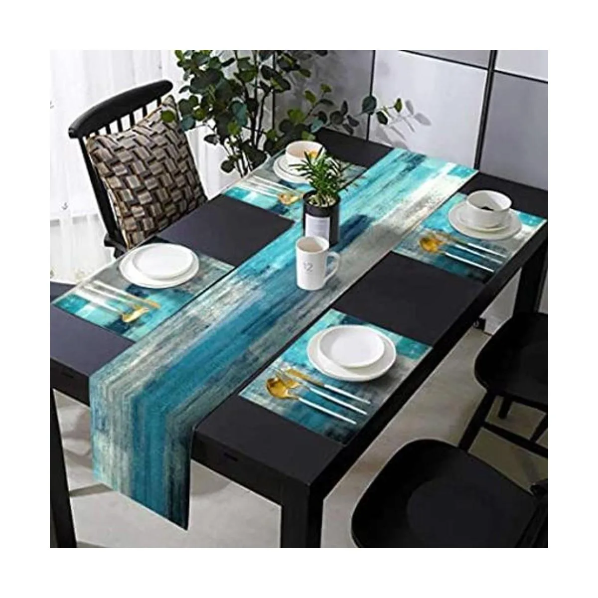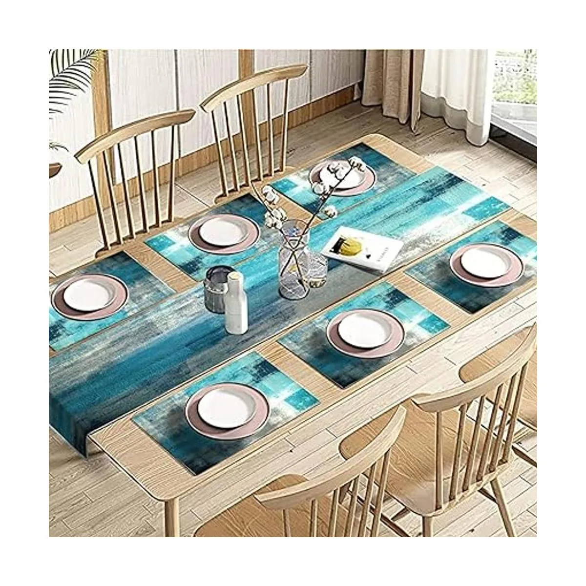 TQFZP Juego de 6 manteles individuales abstractos de color azul azulado, juego de 6 manteles individuales de tela de granja, color azul y gris, estilo vintage, modernos, lavables, decoración del hogar, 70 pulgadas de largo