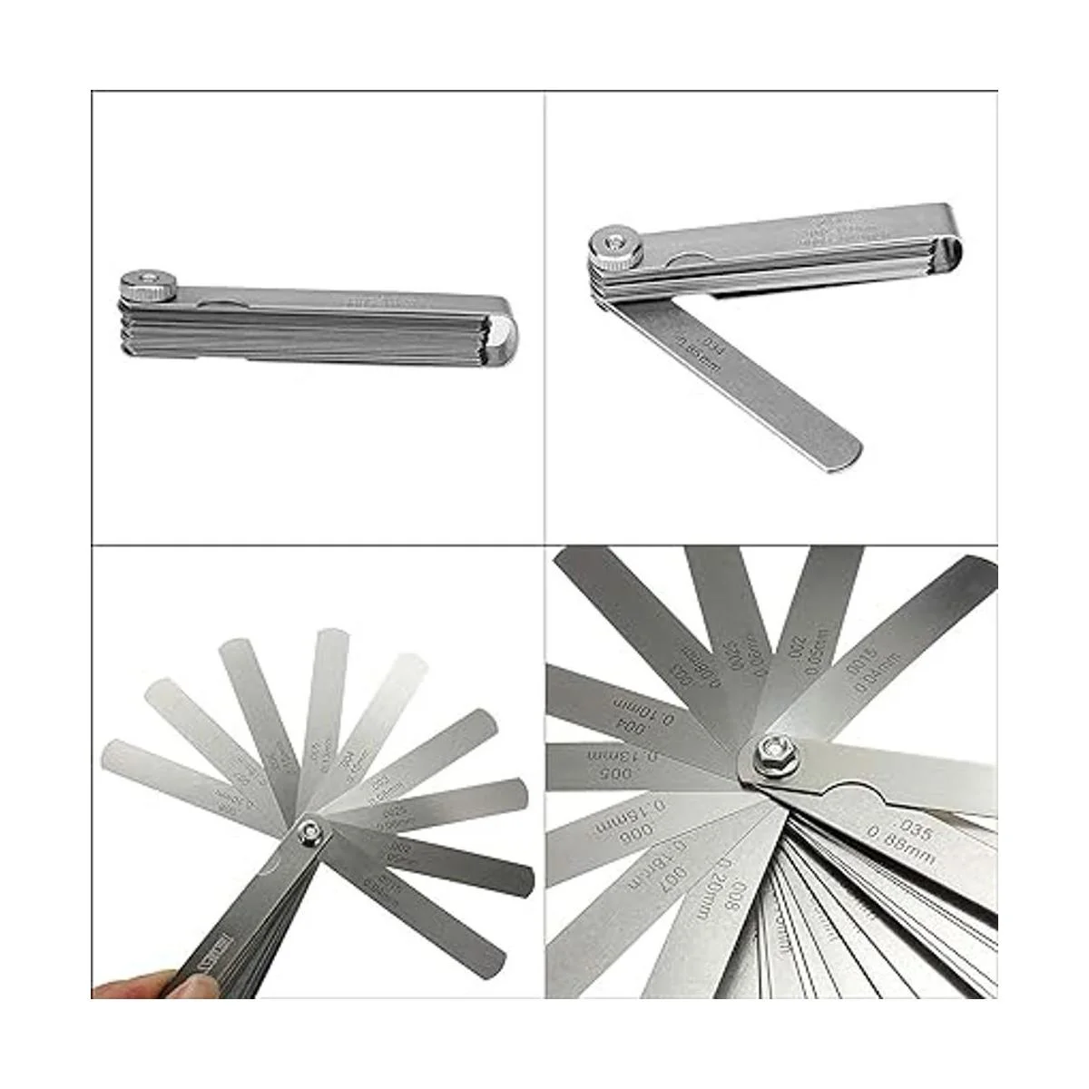 Práctico: utiliza la herramienta de 32 piezas para medir el ancho y el grosor del hueco cuando necesites medir rápida y fácilmente los anchos de los huecos. Adecuado para diseñadores, ingenieros, mecánicos para medir el grosor de las holguras del grifo, huecos de bujías, espacios de rodamiento, huecos de anillo de pistón y otros lugares difíciles de alcanzar.