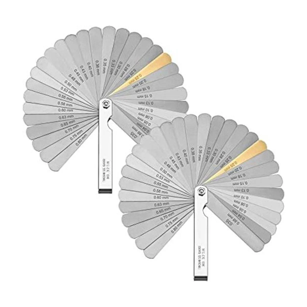 TraderPlus 2 piezas de 32 cuchillas de acero inoxidable de calibre doble marca métrica e imperial de medición de huecos 0.00150.035 pulgadas0.0020.035 in