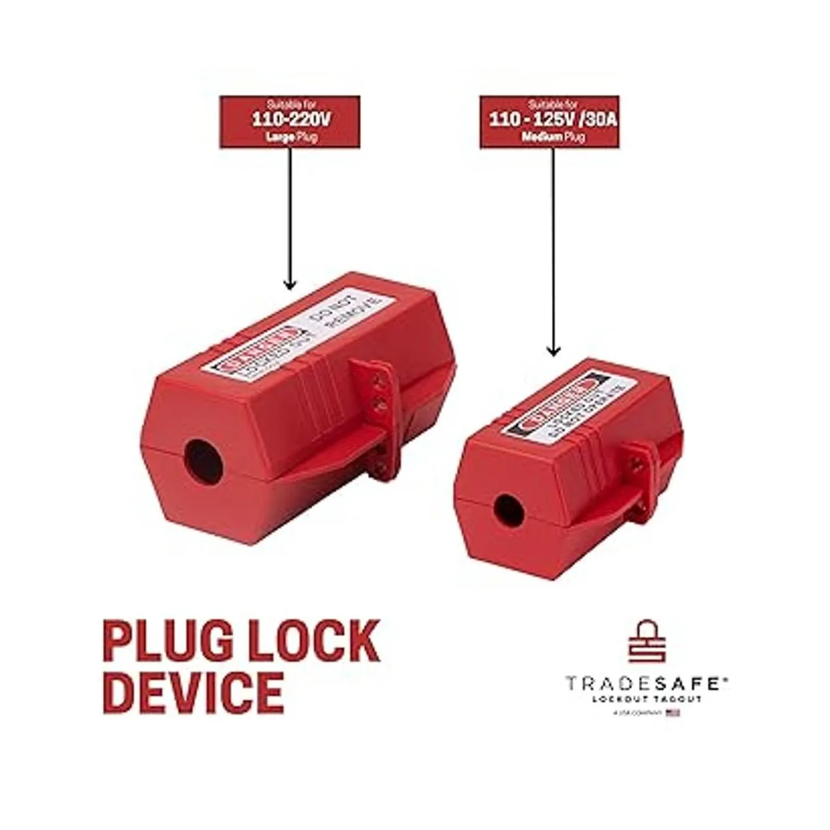 TRADESAFE Bloqueo de enchufe para etiquetado de bloqueo, bloqueo de cable de alimentación de grado industrial de 220 voltios, cubierta de enchufe eléctrico compatible con la OSHA